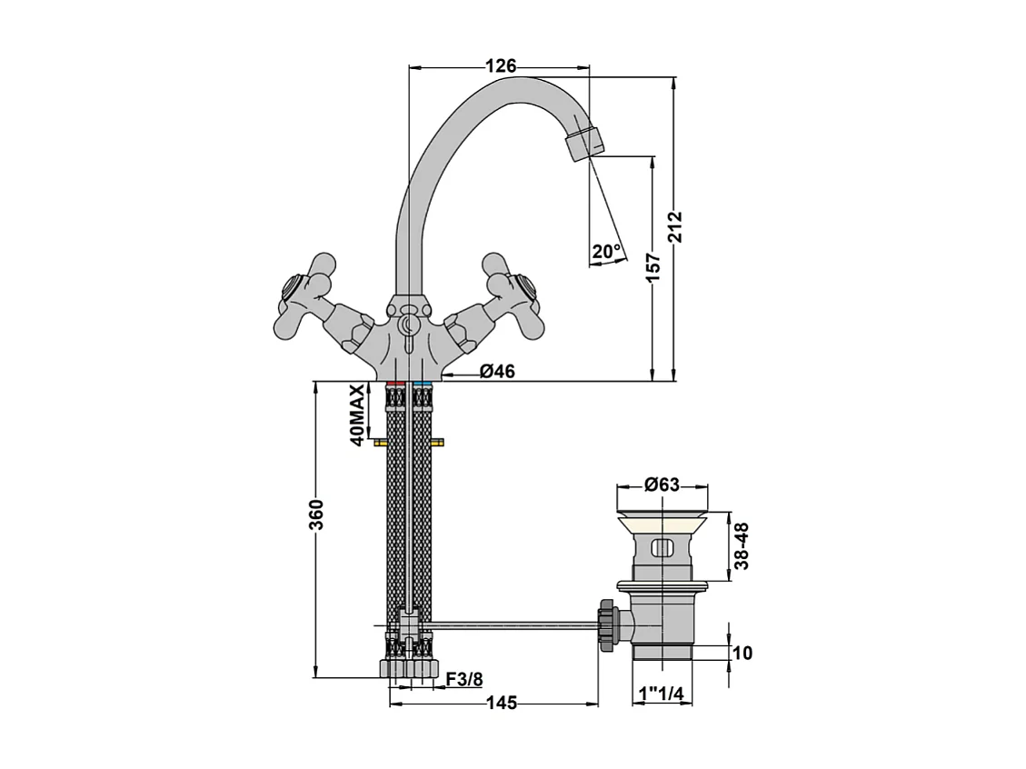 Mélangeur lavabo bec bas mobile PAINI Tiffany Vieux Bronze