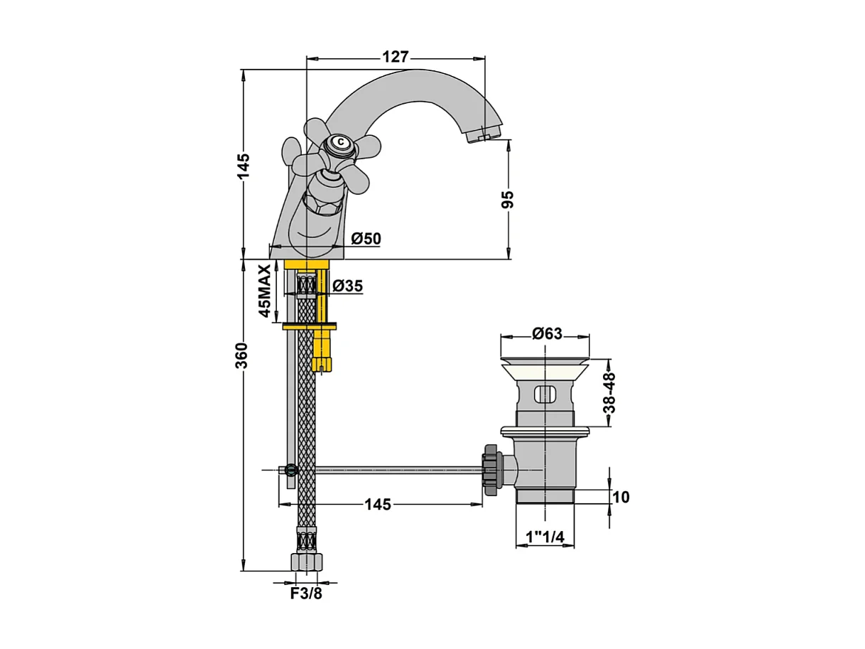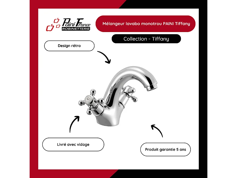 Mélangeur lavabo bec bas monotrou PAINI Tiffany Gris Acier