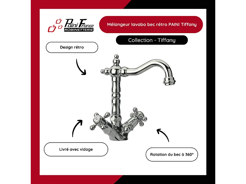 Mélangeur lavabo bec rétro PAINI Tiffany Vieux Bronze