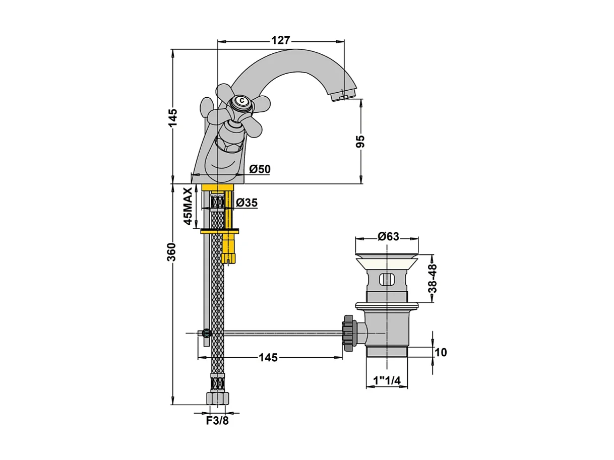 Mélangeur lavabo monotrou PAINI Tiffany Vieux Bronze