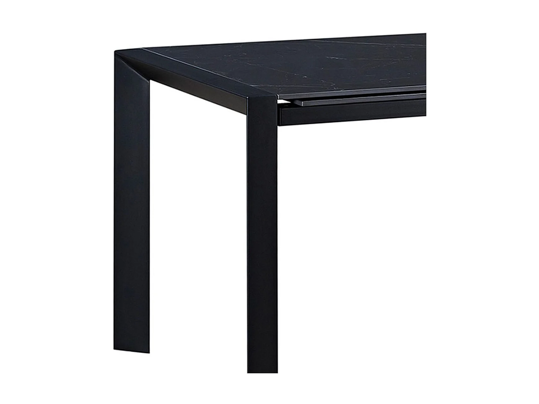 MELIA - Table Repas Allongeable Plateau Céramique Marbré Noir Pieds Métal Gris
