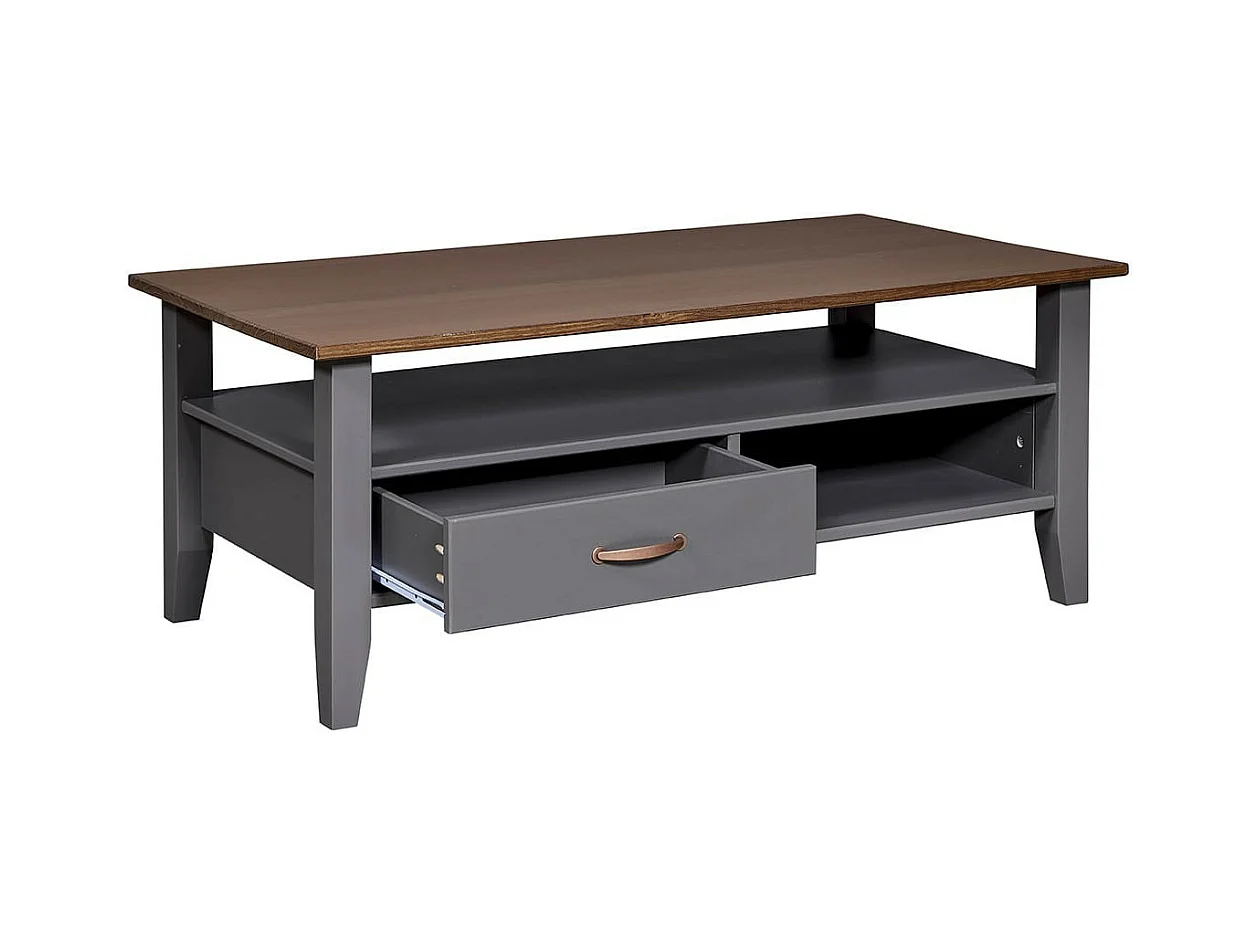 MELINA - Table Basse Rectangulaire Coloris Gris et Naturel