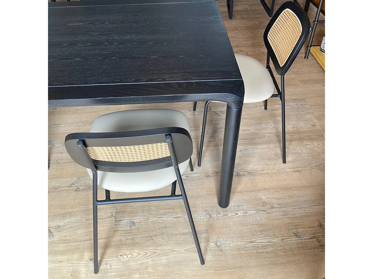 MEMPHIS - 2 Chaises de repas en simili cuir et cannage beige