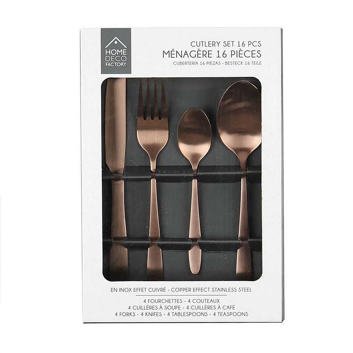 Ménagère 16 Pièces en Acier Inoxydable Cuivré