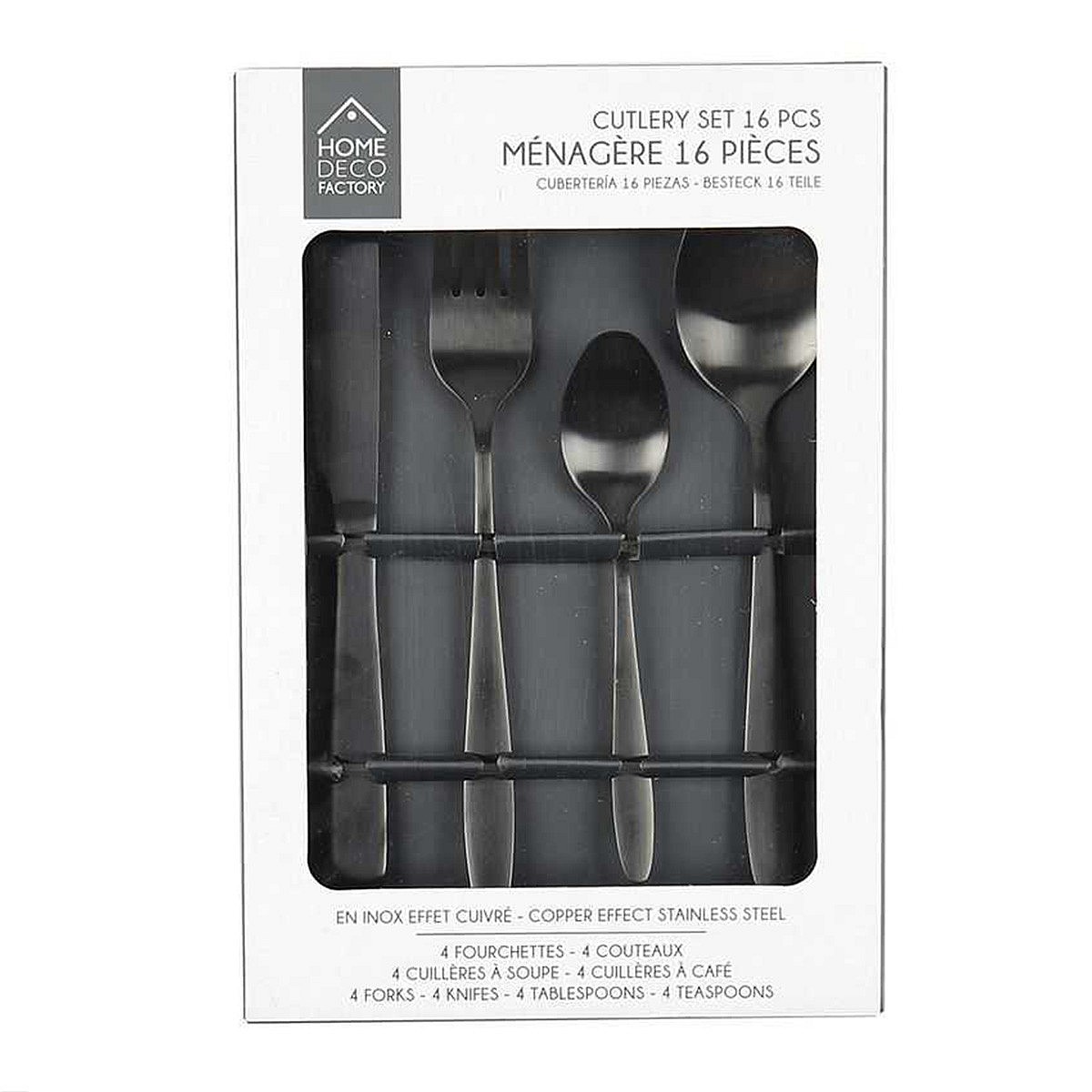 Ménagère 16 Pièces en Acier Inoxydable Noir