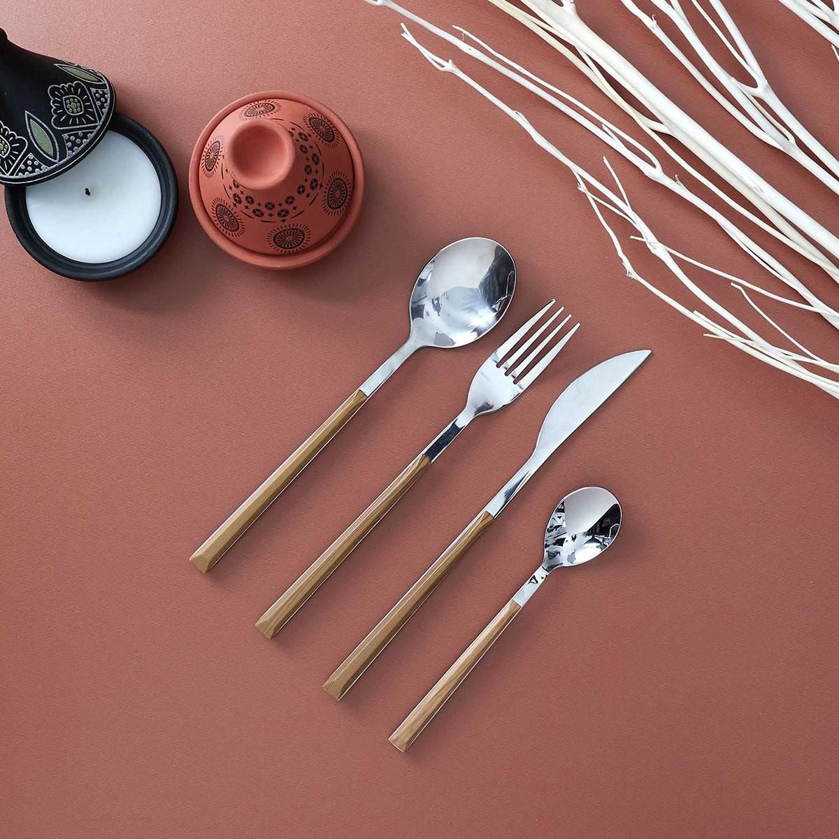 Ménagère 16 Pièces en Inox Manche Effet Bois