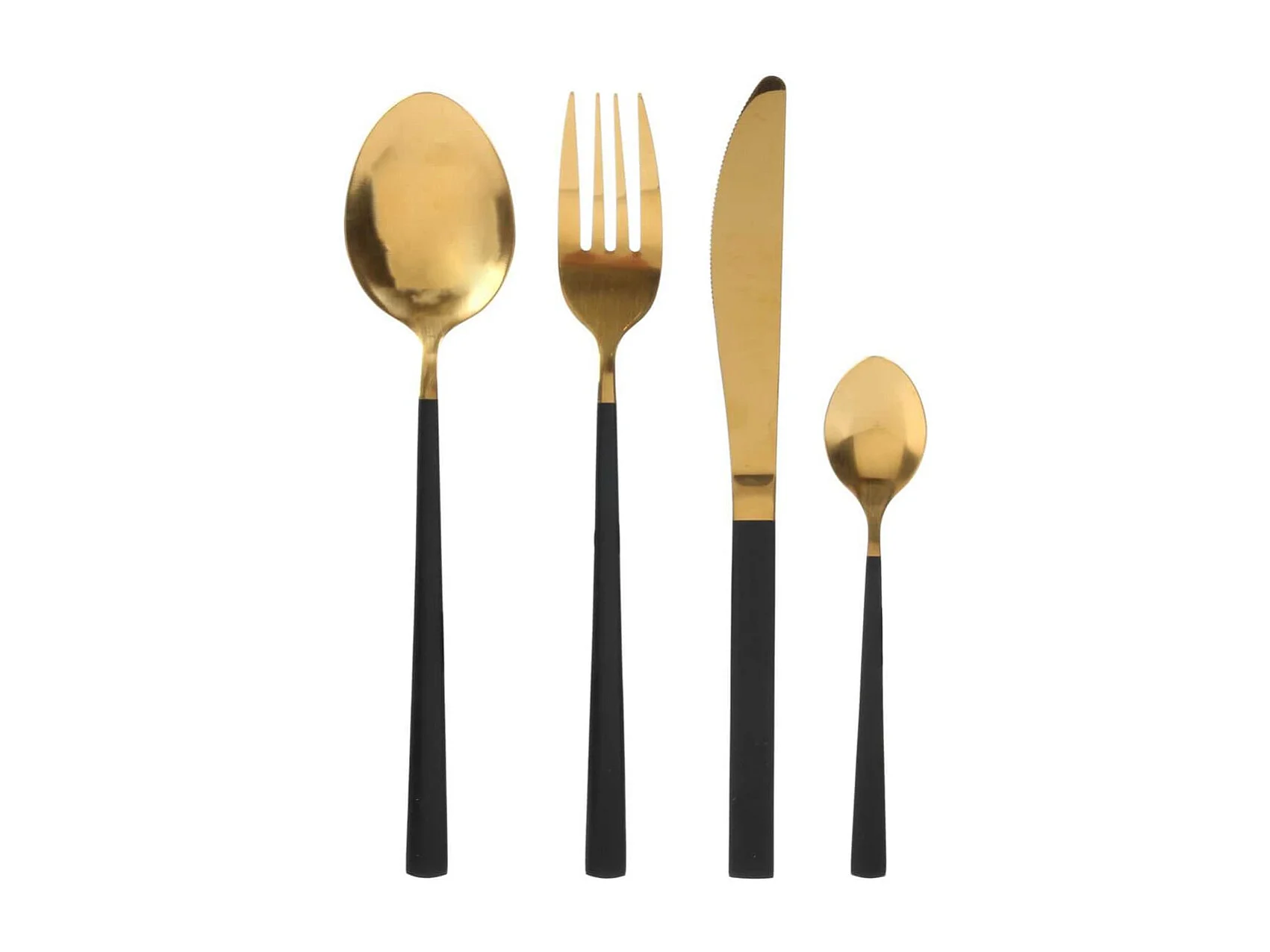 Ménagère 16 Pièces en Inox Or Manche Noir - BISTRA