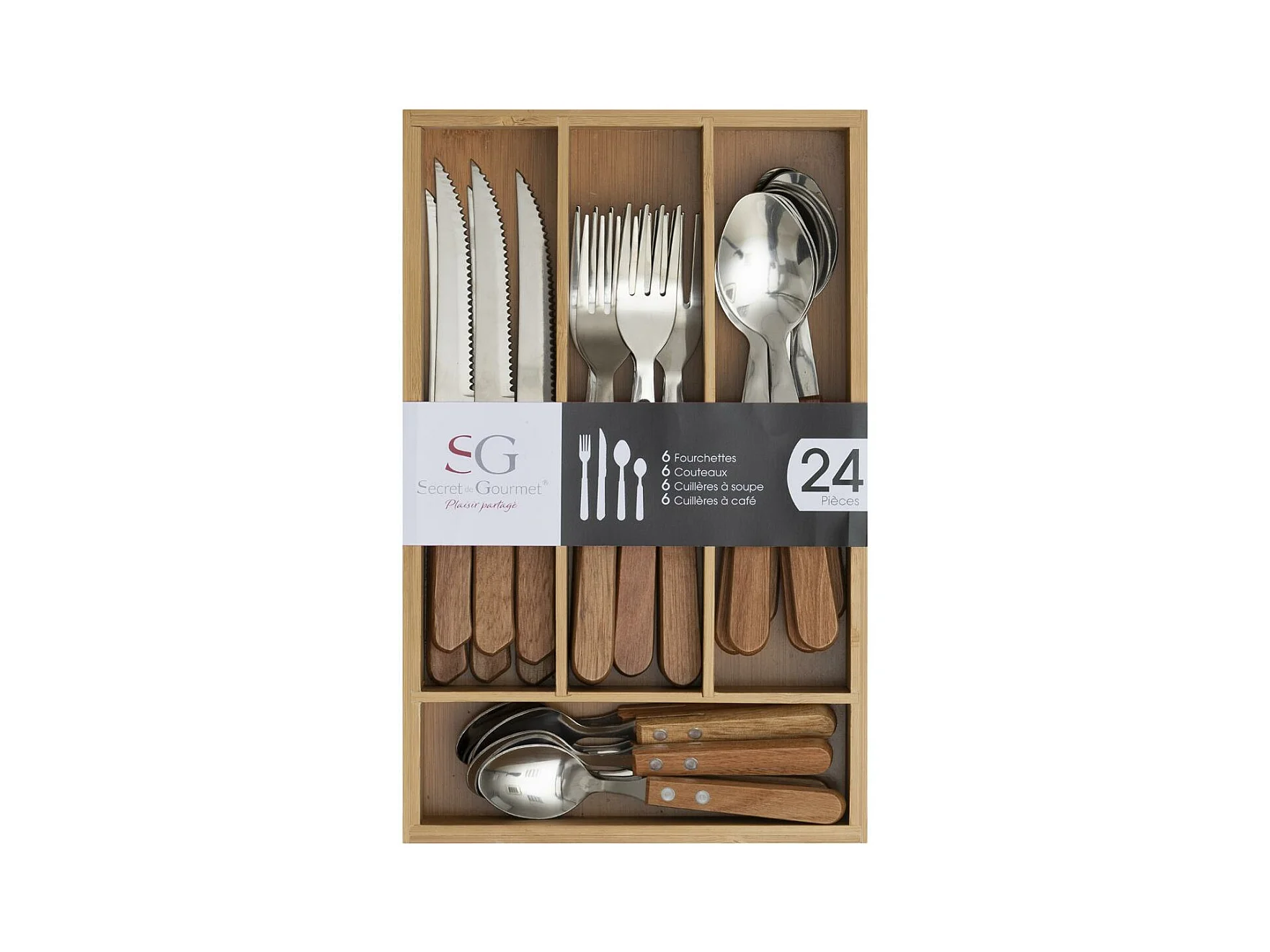 Ménagère 24 Pièces & Bac "Cadence" 30cm Naturel