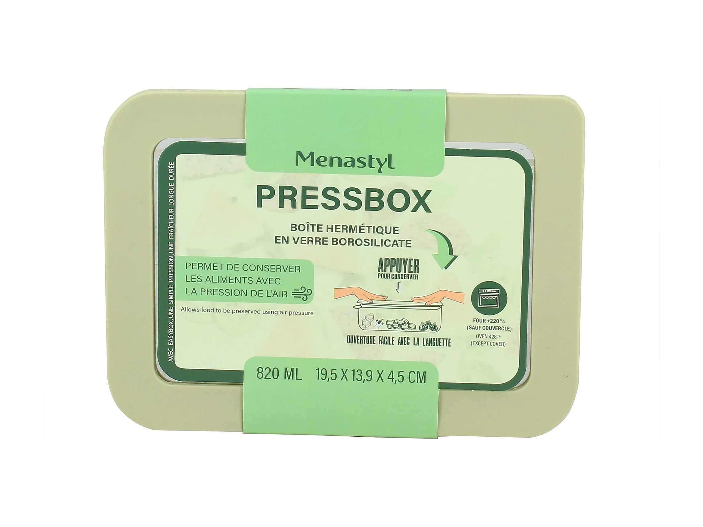 Menastyl - Boite Hermetique Rectang Pressbox 820ml En Verre Borosilicate Celadon