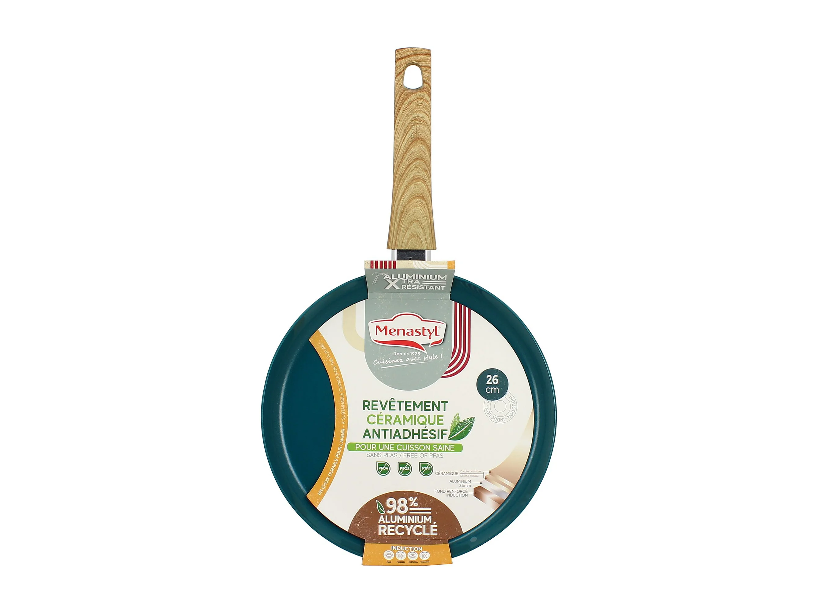 Menastyl - Poele Colorama 24cm En Aluminium Recycle Bleu Canard Induction