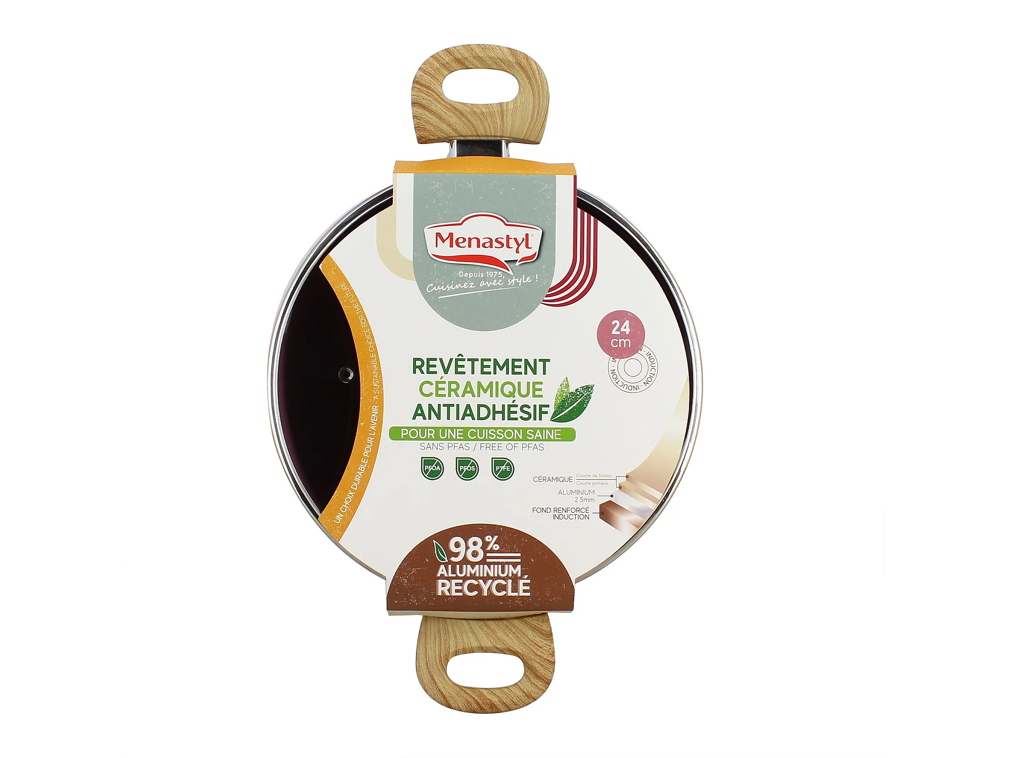 Menastyl - Faitout Colorama 24cm En Aluminium Recycle Lilas Couvercle Verre