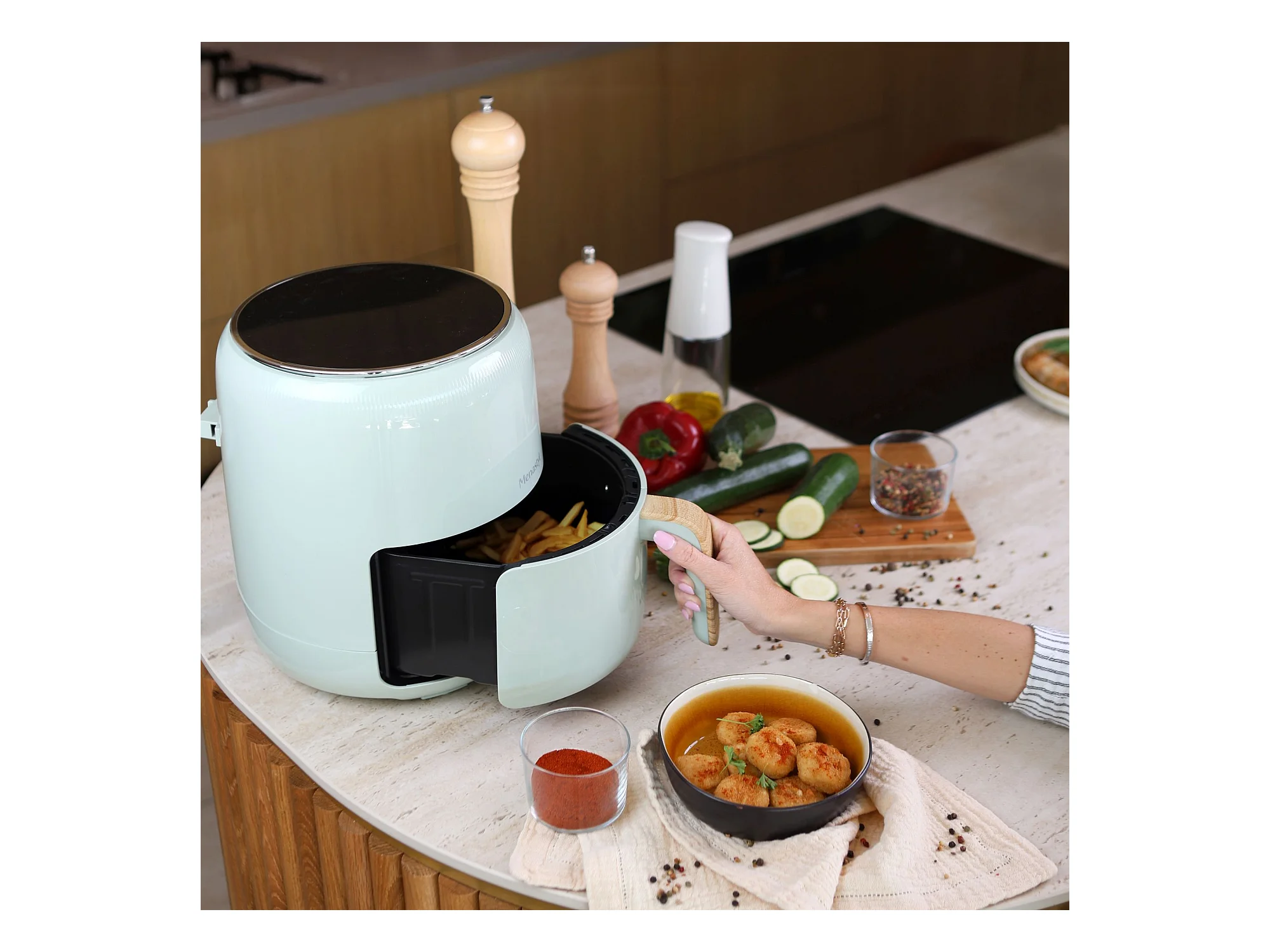 Menastyl - Friteuse A Air Chaud 4.5l Colorama Celadon Poignee Finition Bois