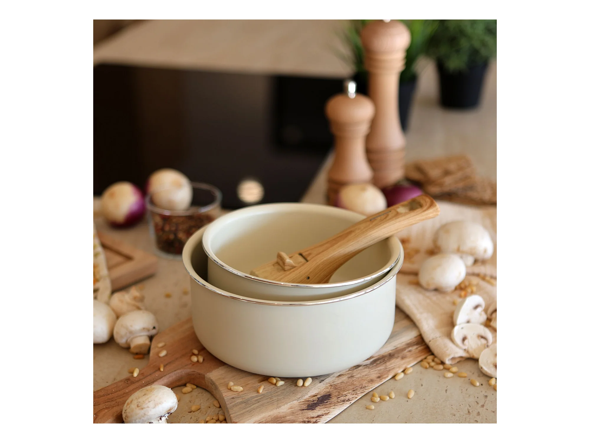 Menastyl - Lot 2 Casseroles Colorama 16 Et 18cm En Aluminium Creme Avec Poignee