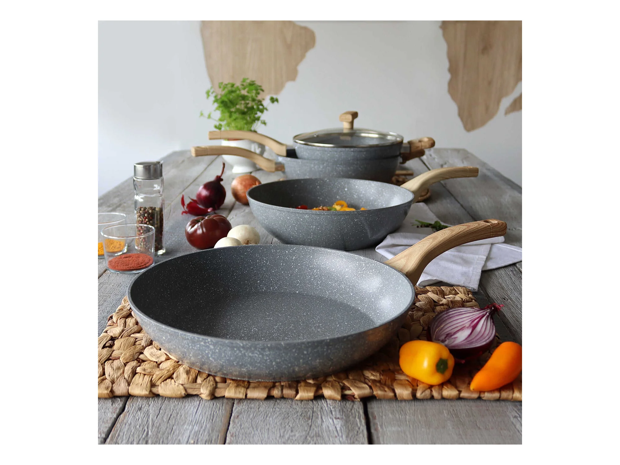 Menastyl - Poele Cannelle 30cm En Aluminium Avec Poignee En Bois Clair
