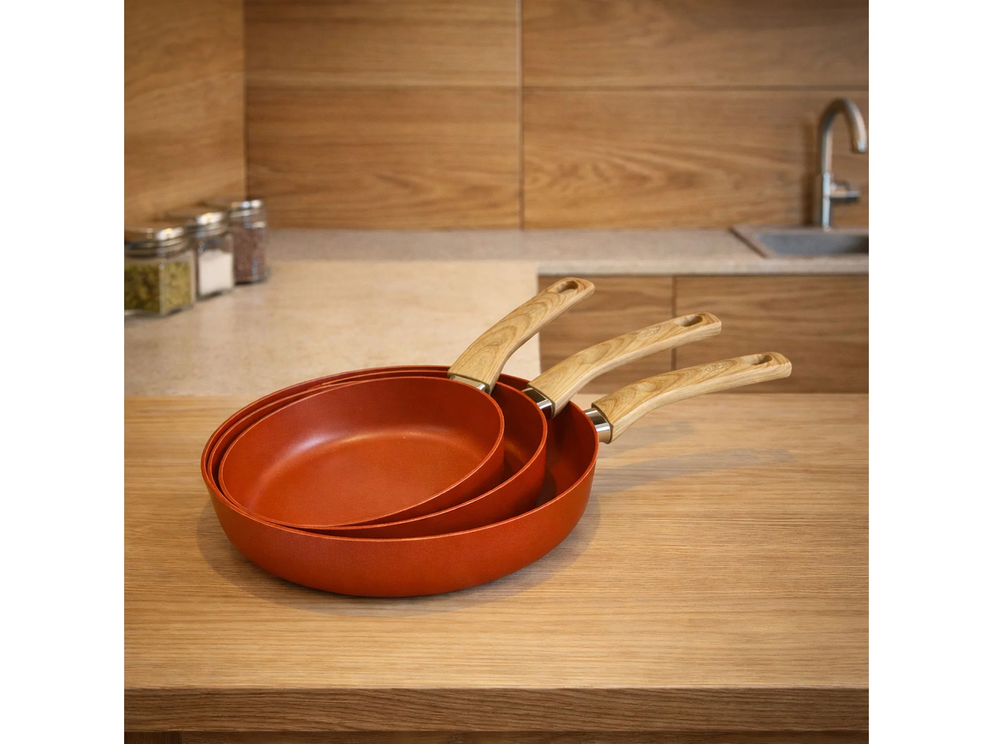 Ogo Living - Poele Ector 28cm En Aluminium Paprika Avec Manche En Bois