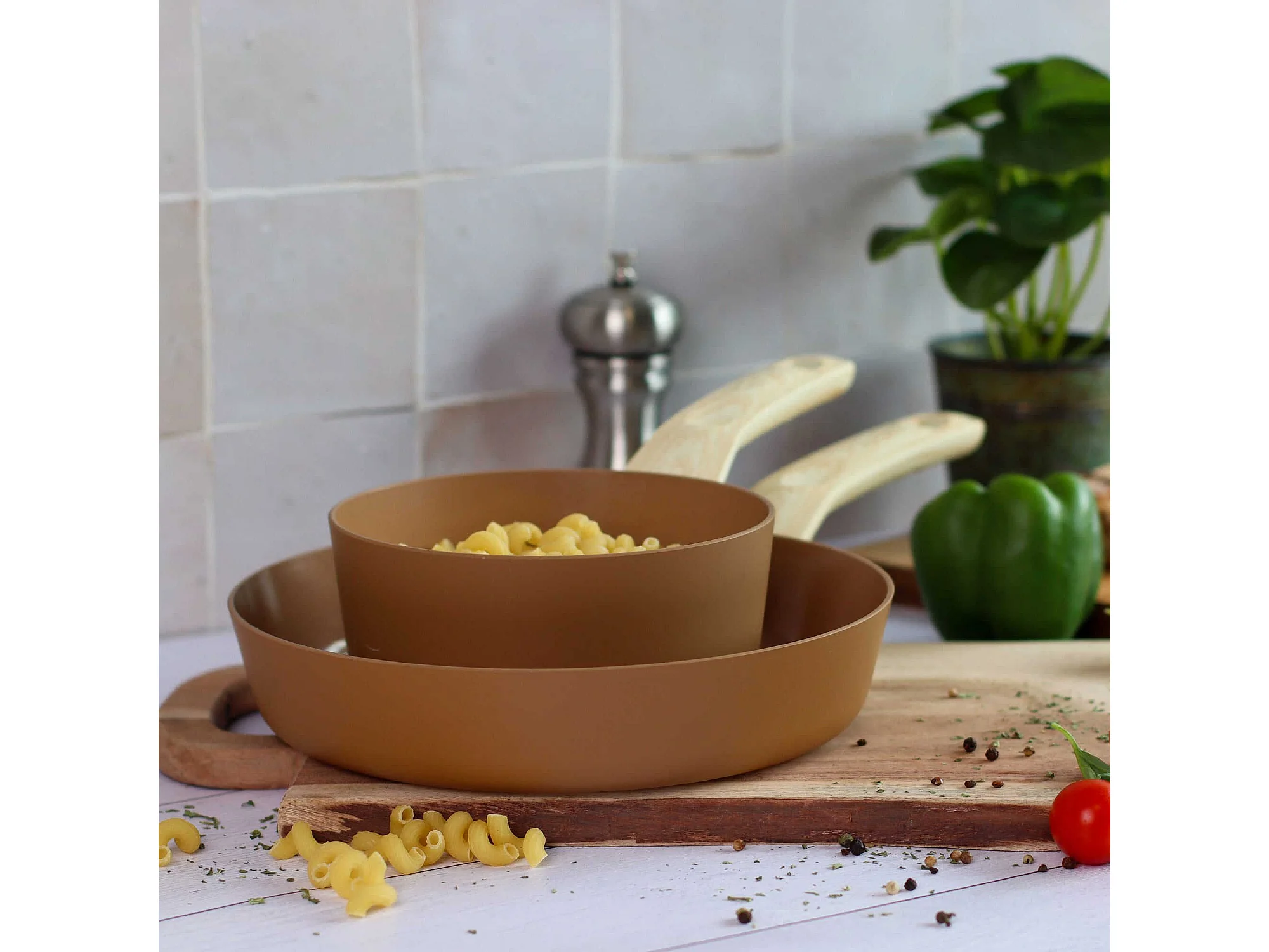 Menastyl - Set De 5 Pieces Colorama Noisette- Poeles/casseroles/wok - En Aluminium - Revetement Antiadhesif En Ceramique
