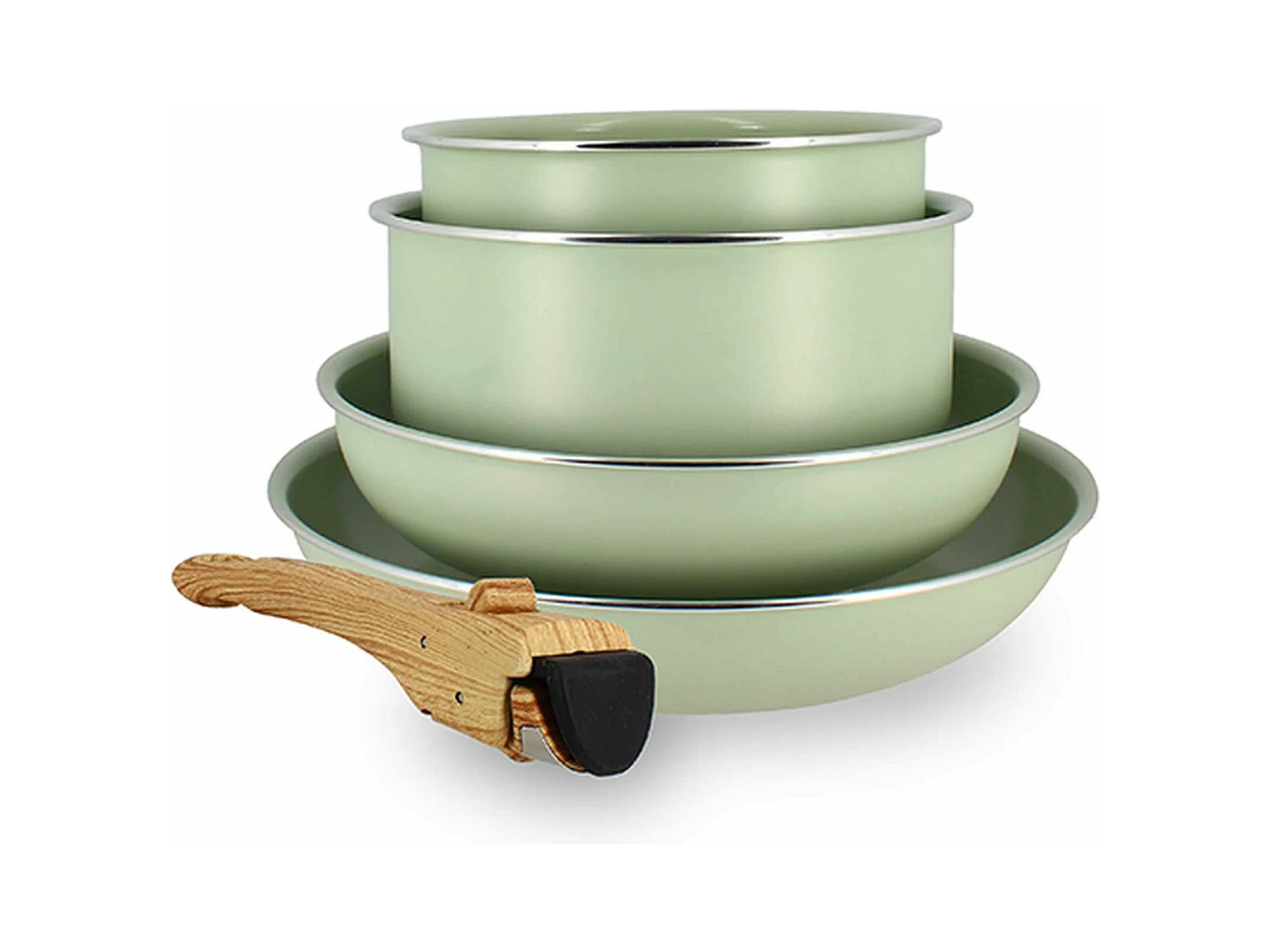 Menastyl - Set De 7 Pieces Colorama Celadon - Poeles/casseroles/faitout - En Aluminium - Revetement Antiadhesif En Ceramique
