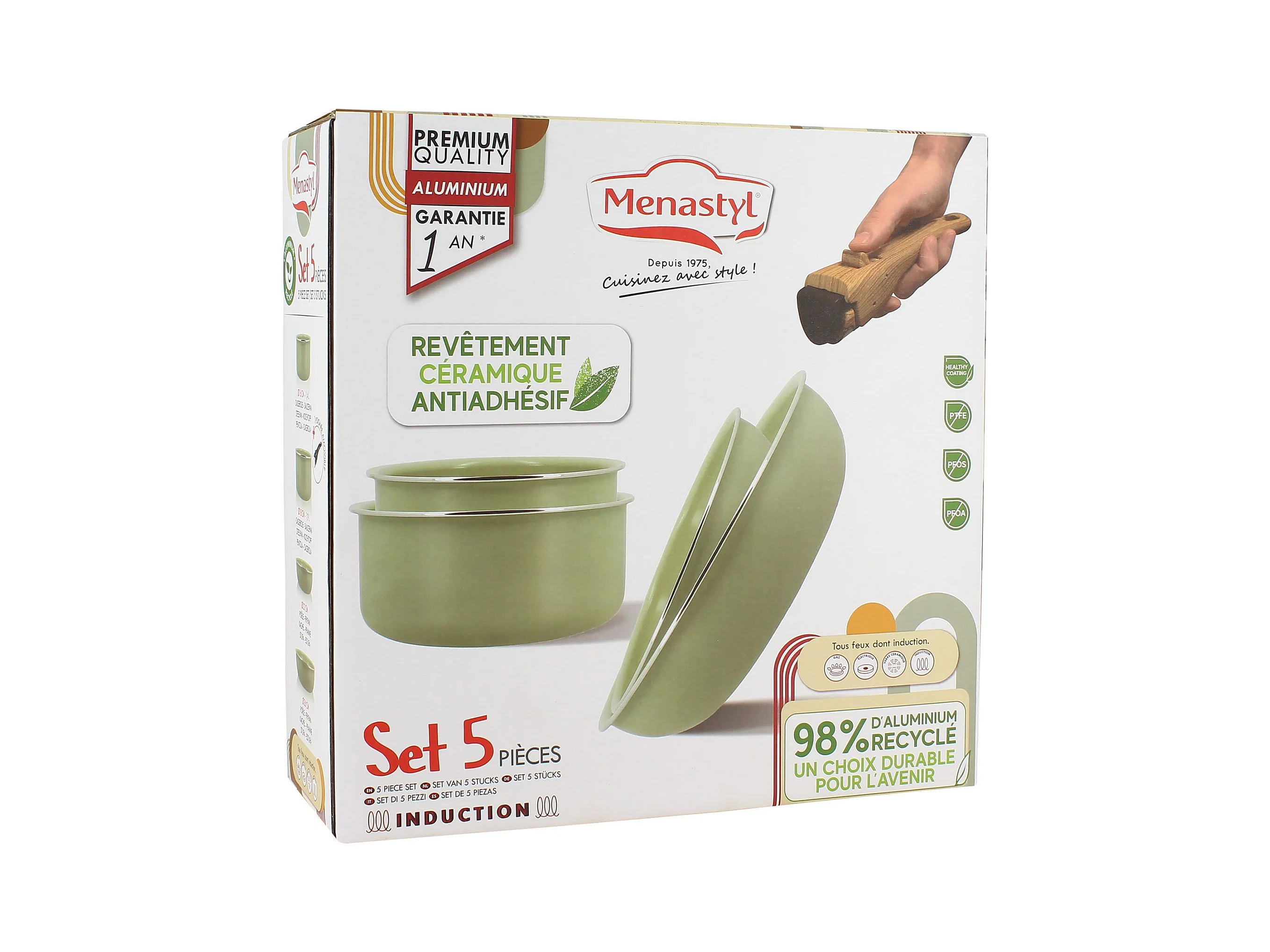 Menastyl - Set De 5 Pieces Cuisson En Aluminium Recycle Celadon