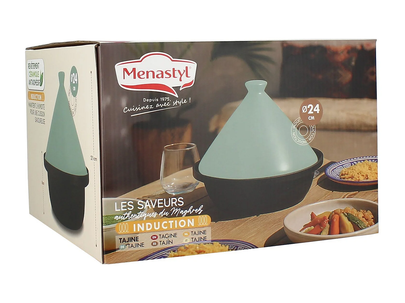 Menastyl - Tajine D24cm Fond Alu Induction Couvercle En Ceramique Celadon