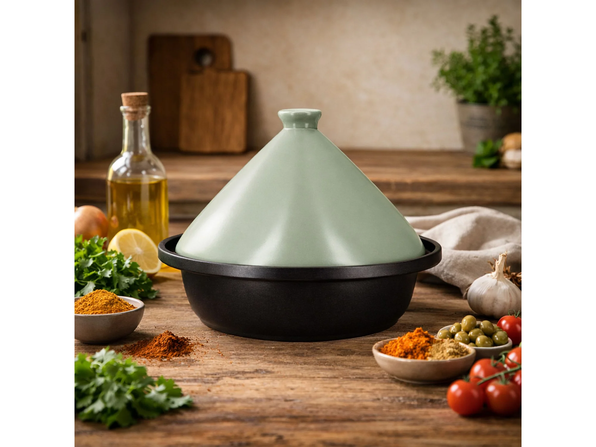 Menastyl - Tajine D24cm Fond Alu Induction Couvercle En Céramique Celadon