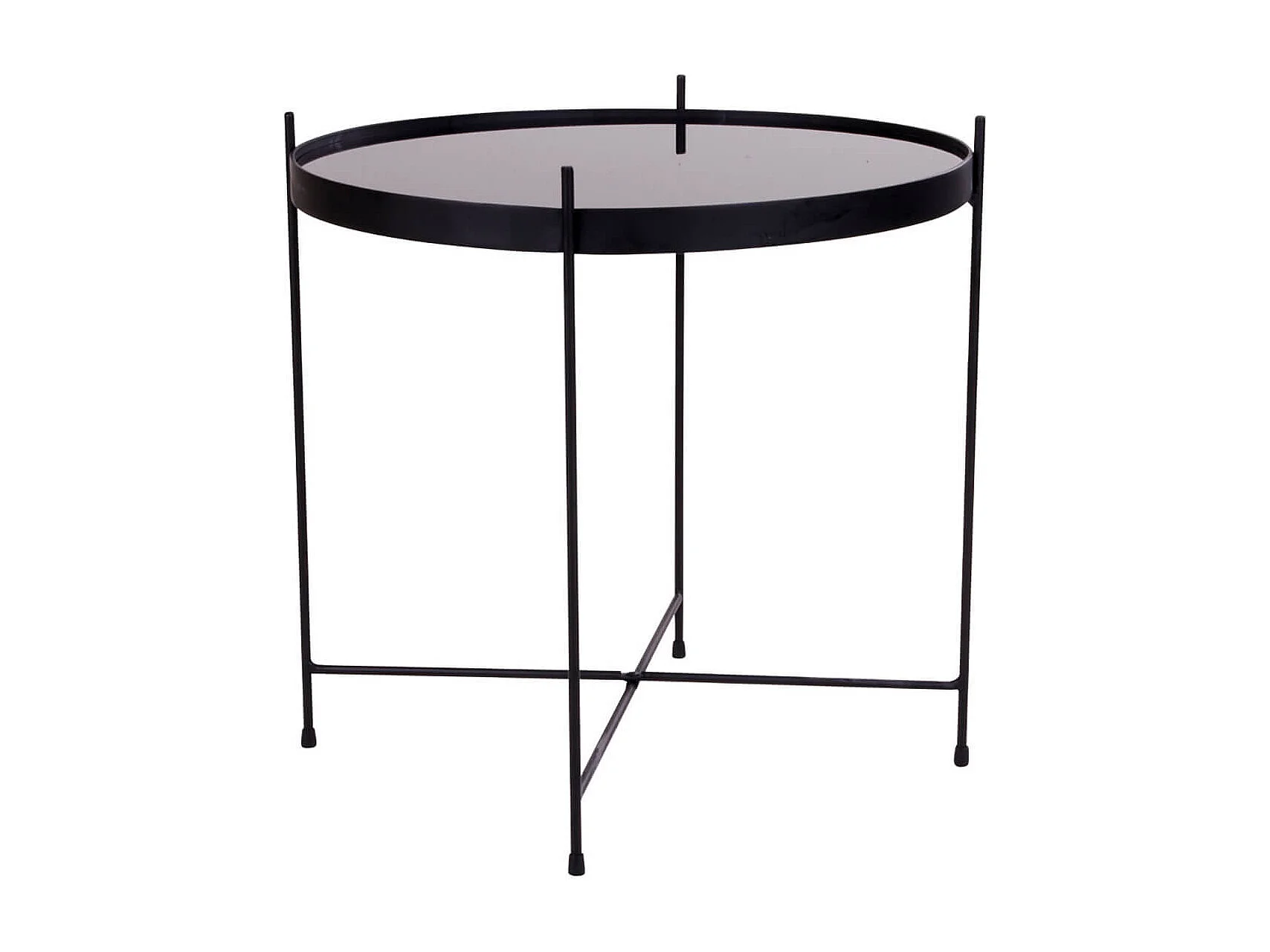 MEOLO - Table Basse Ronde Ø48cm Acier Noir et Plateau Verre