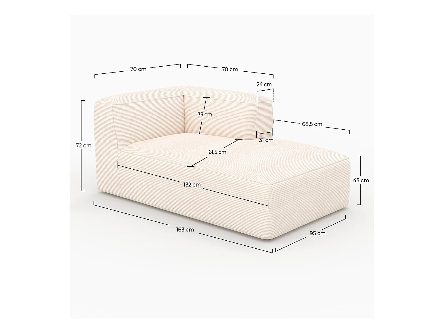 Méridienne d'angle à droite pour canapé modulable en velours blanc - Mina