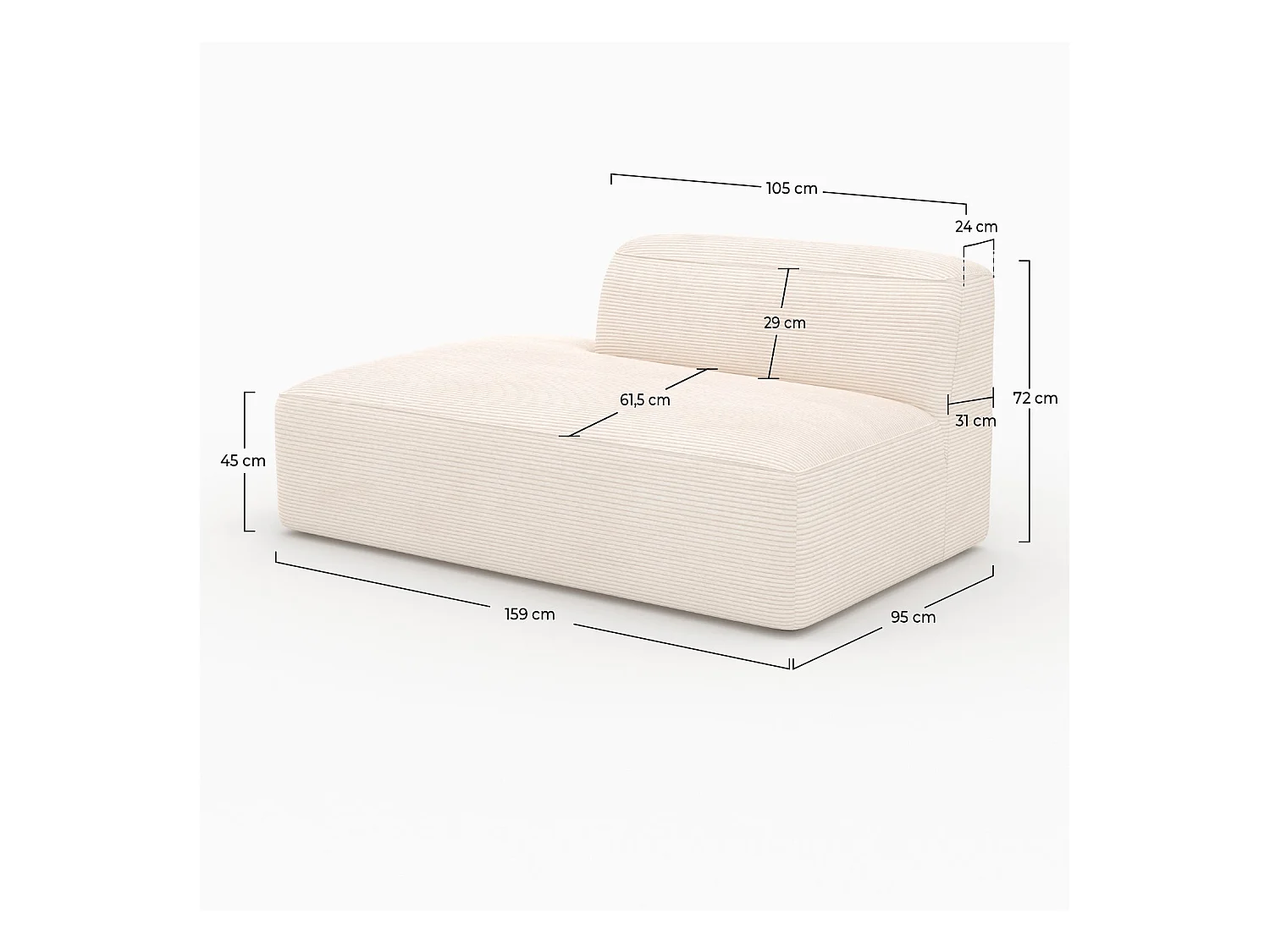 Méridienne dossier à droite pour canapé modulable en velours blanc - Mina