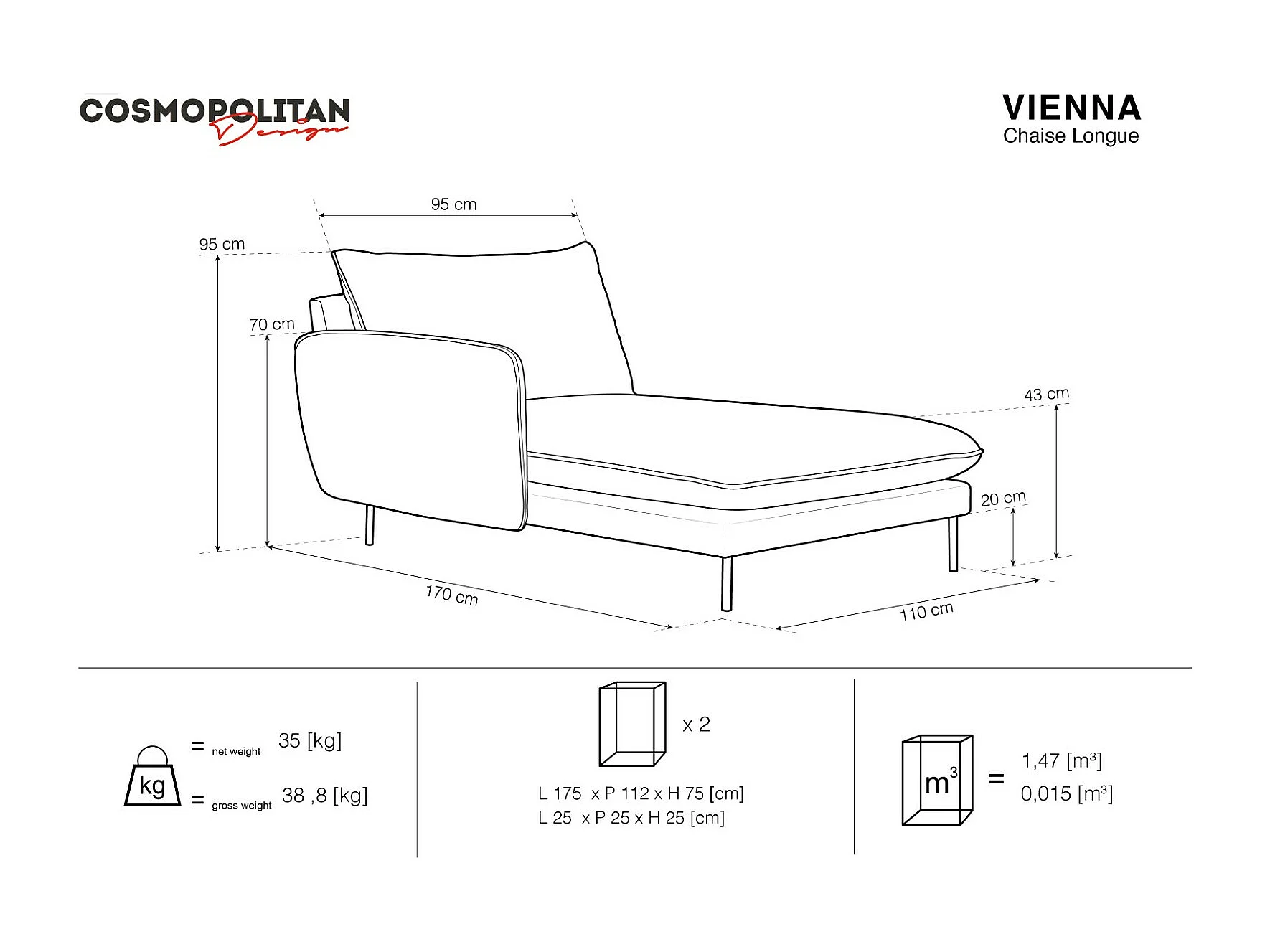 Cosmopolitan Design - Méridienne gauche "Vienna" en velours jaune - 170x110x95cm