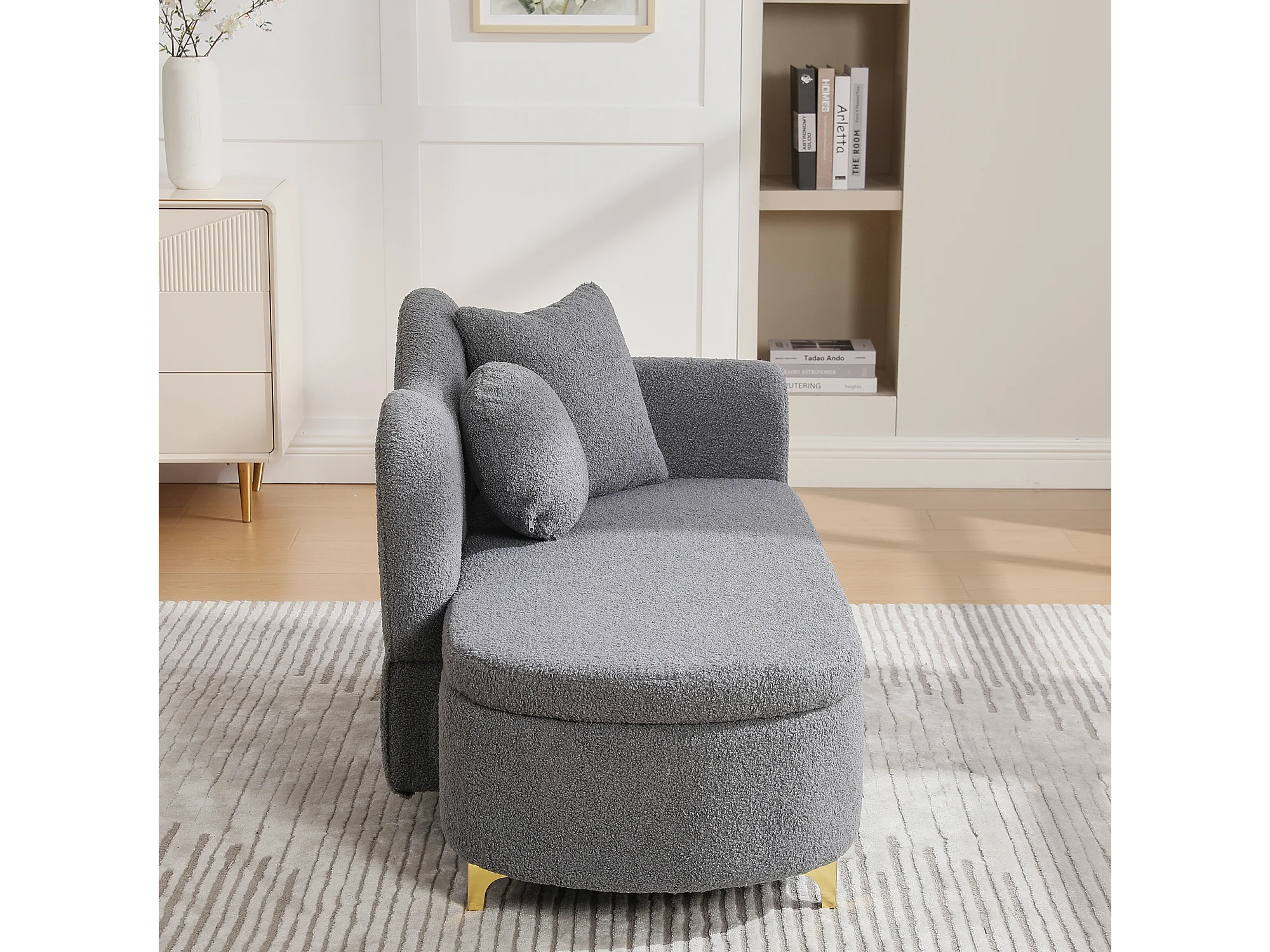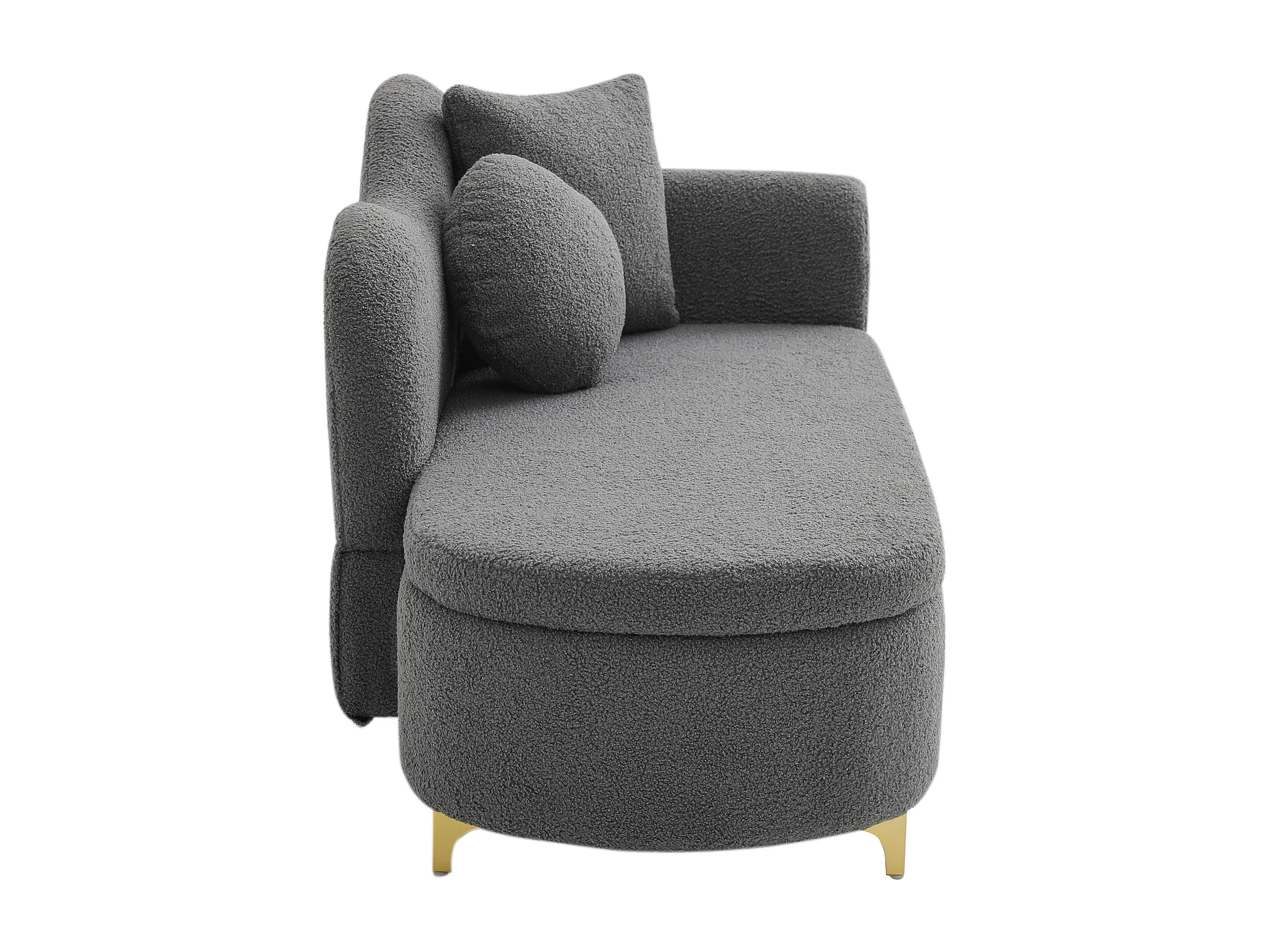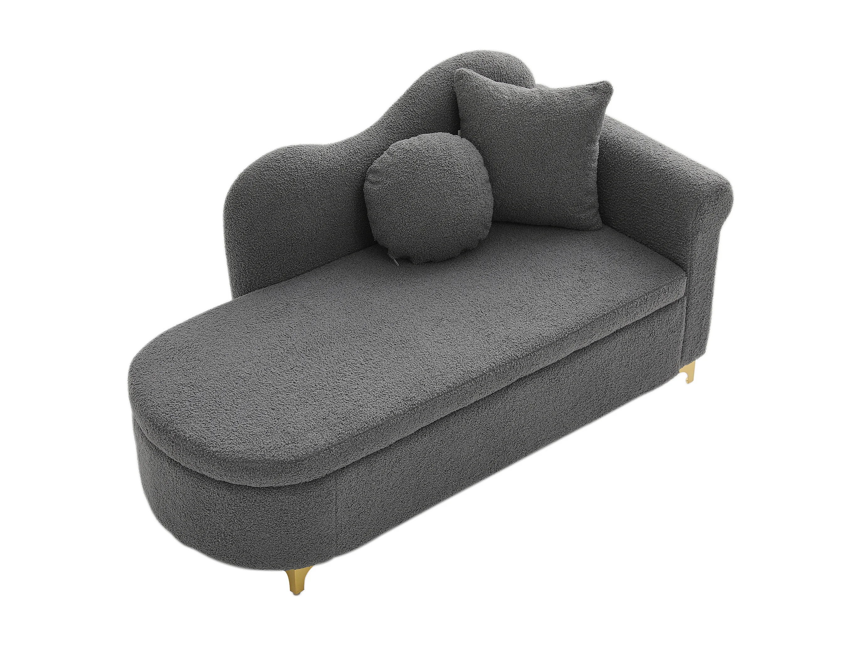 Méridienne moderne de dossier ondulé - 134 x 64 x 70 cm - avec rangement + coussins - gris