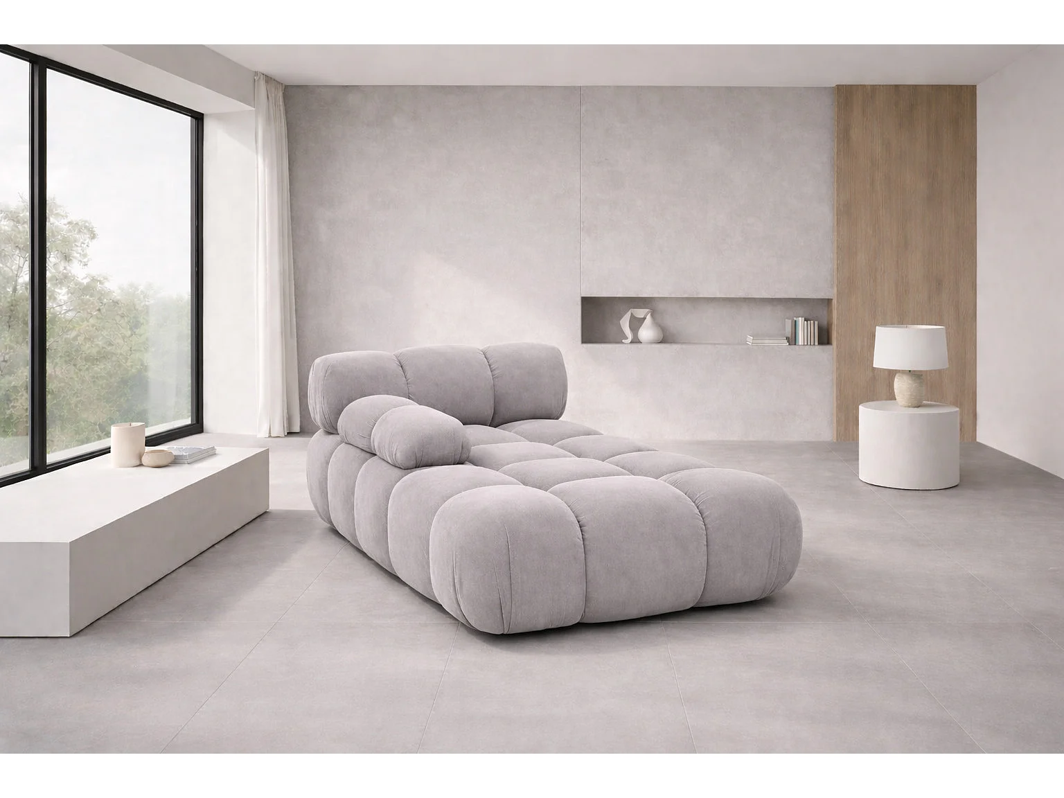 Méridienne modulaire, velours Salvador, Gris, Gauche, Selia