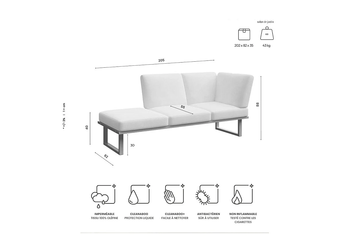 Méridienne Soledo Cappucino - Cadre blanc