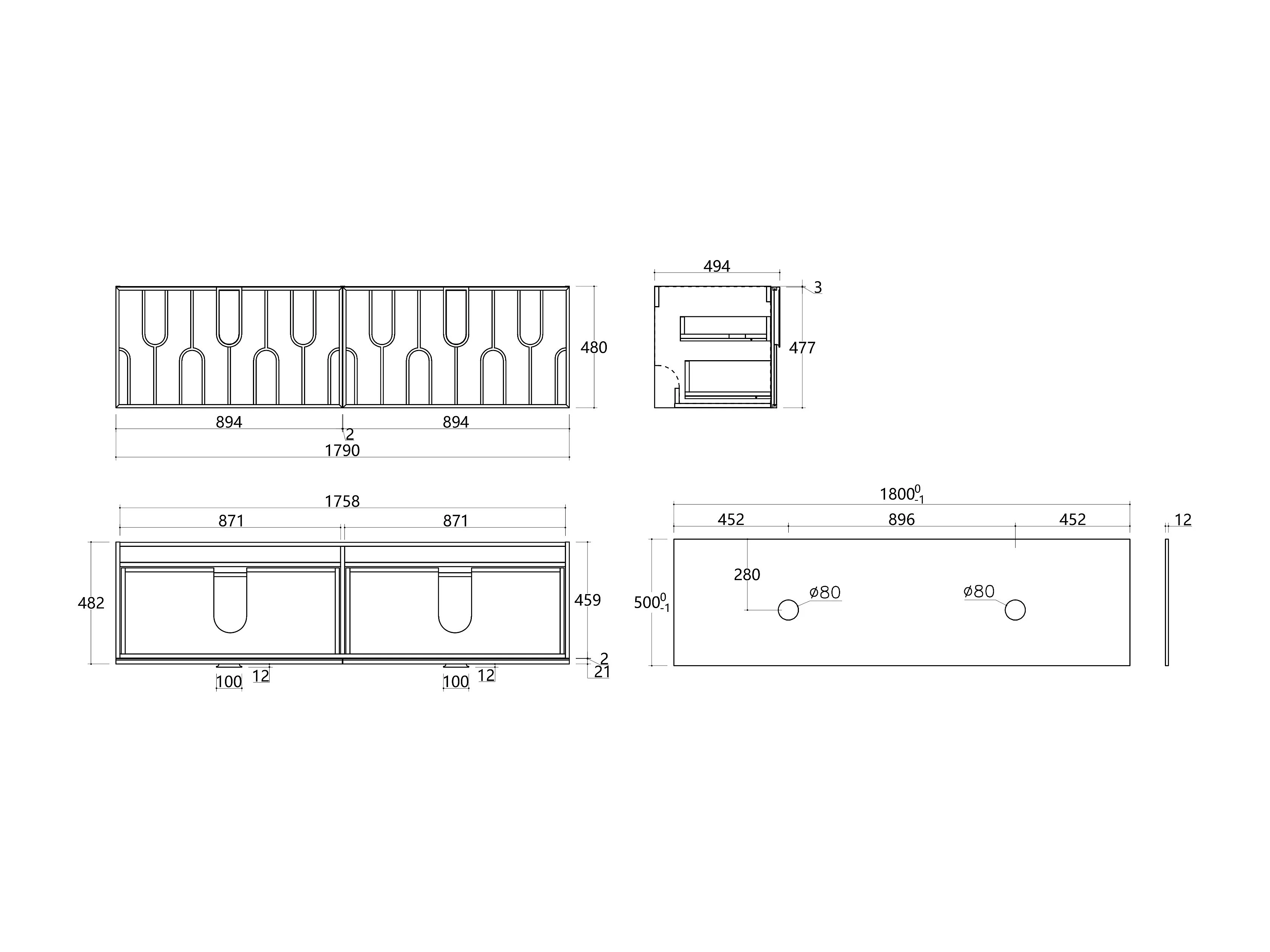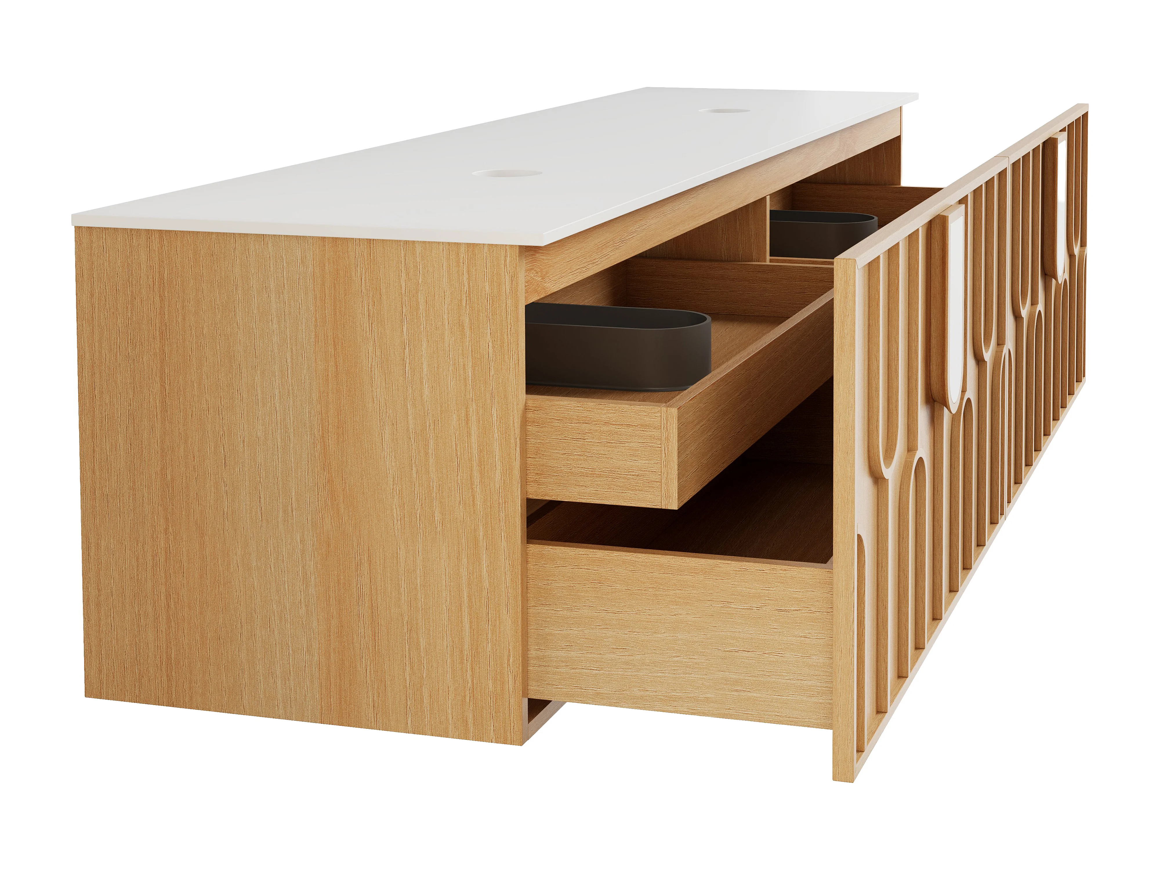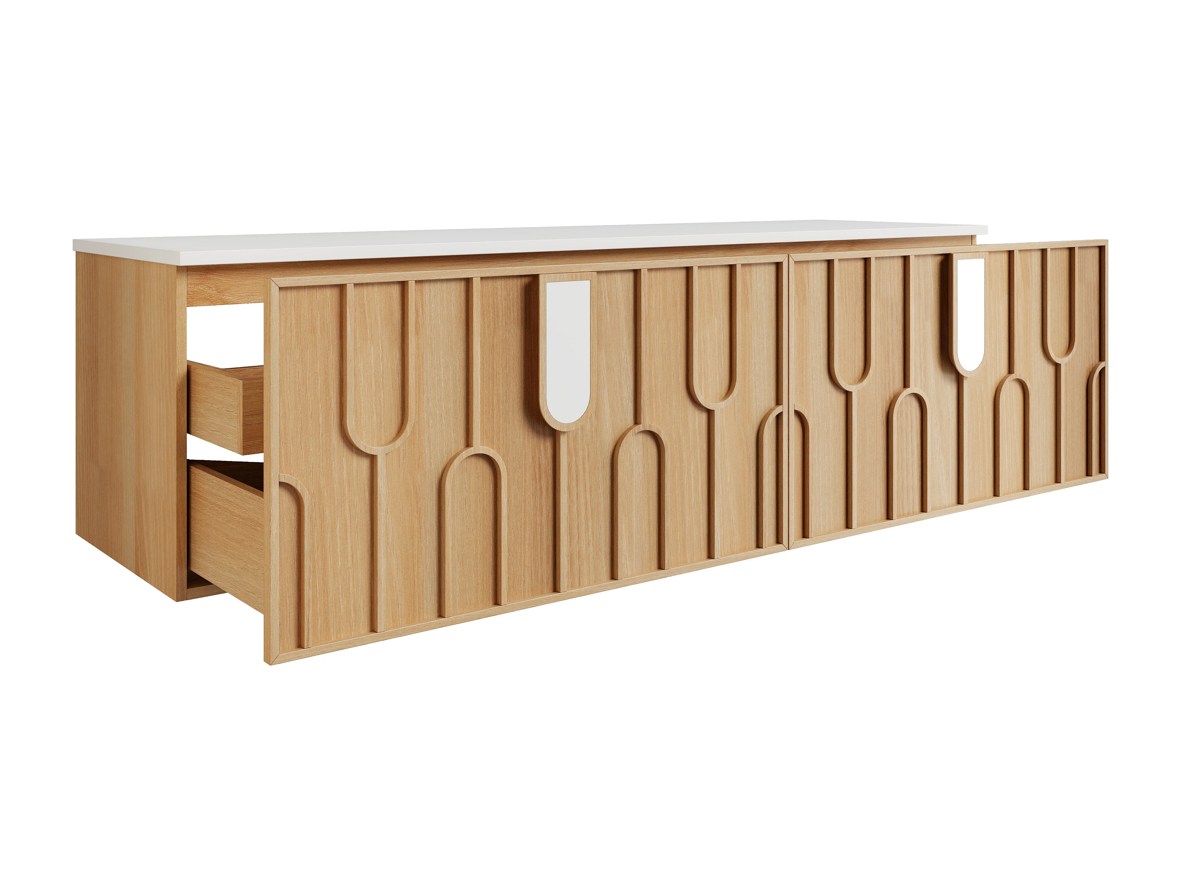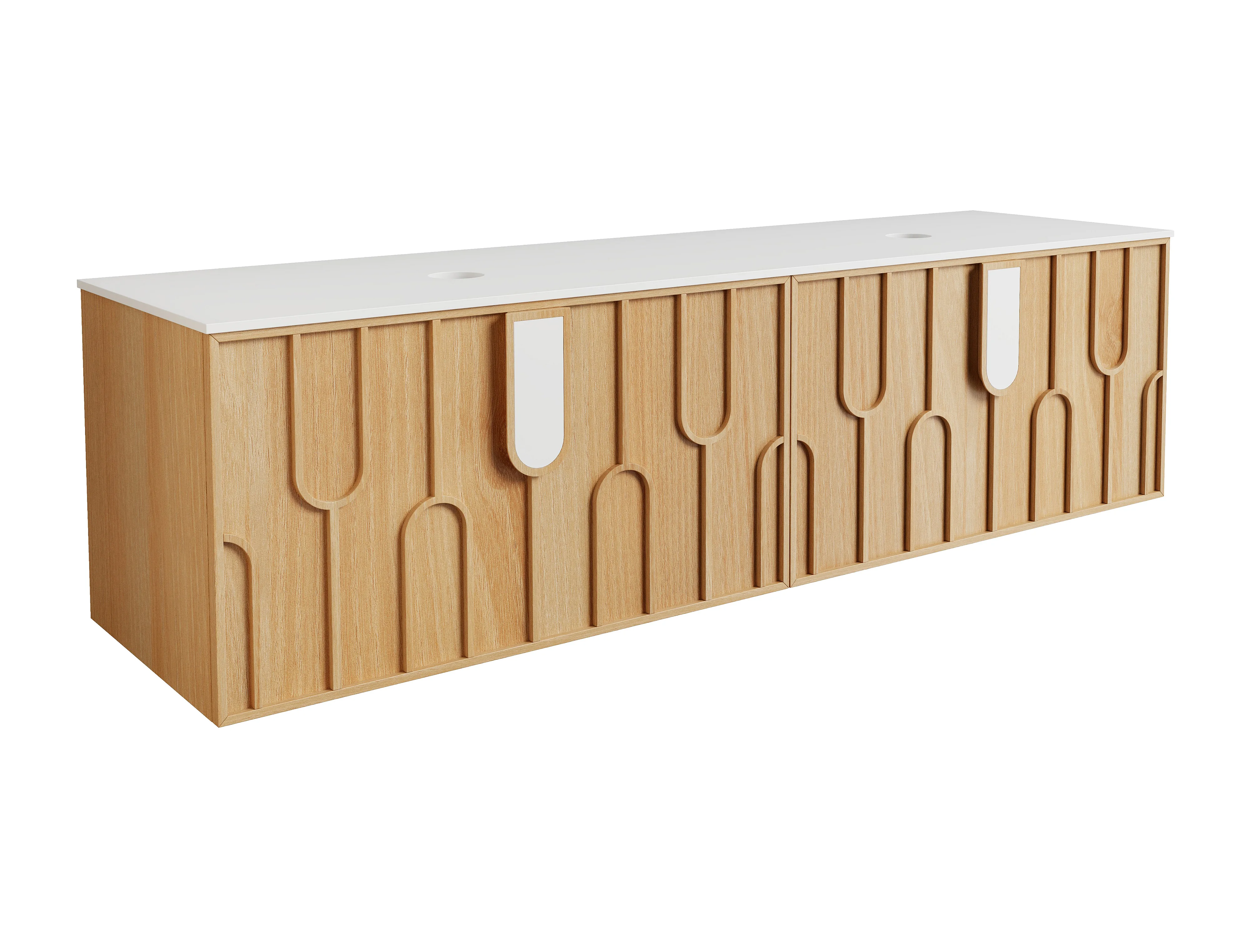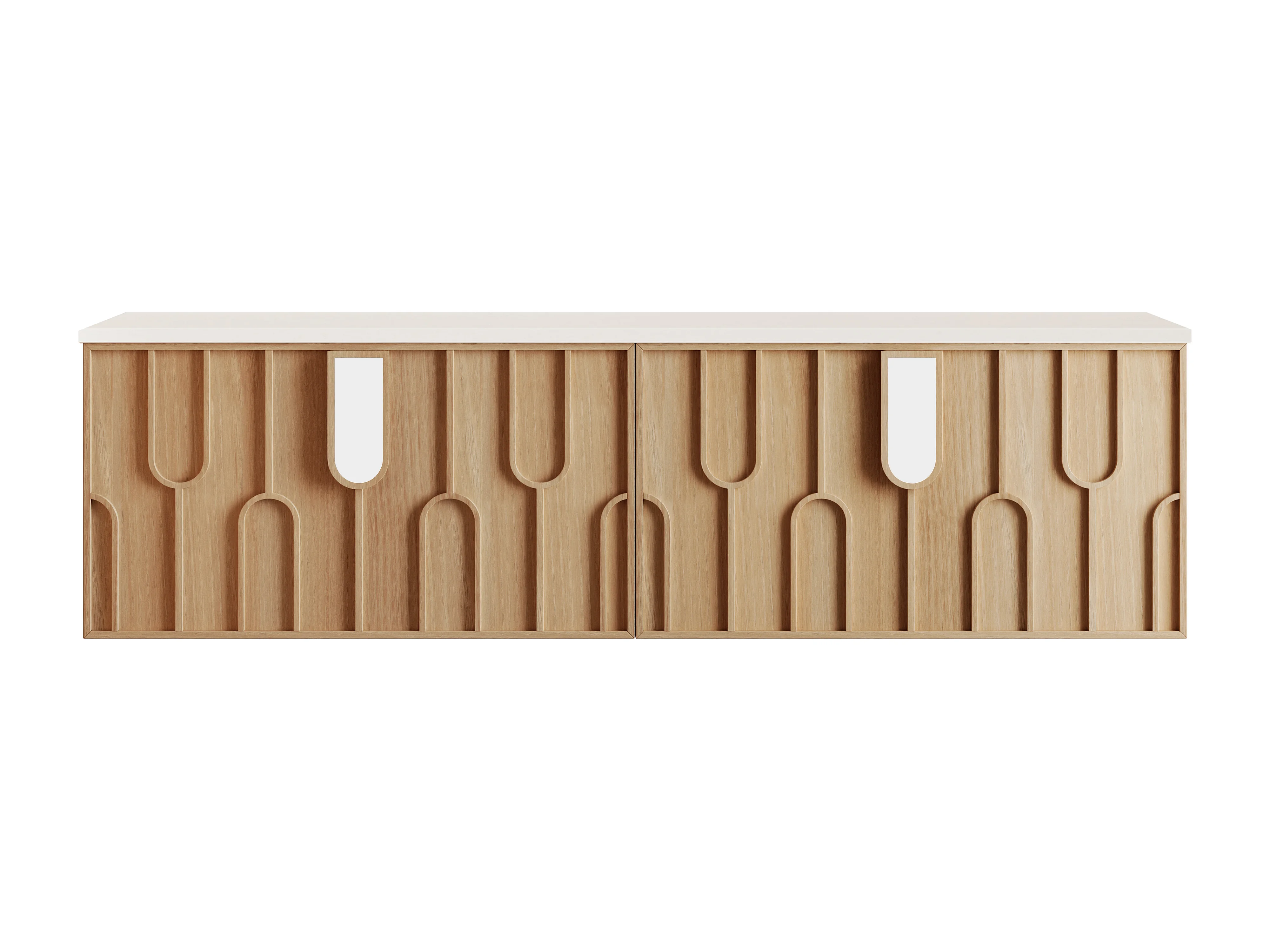 Meuble sous vasque suspendu texturé avec plan en pierre frittée mate - Naturel clair - L180 cm - MERKAN