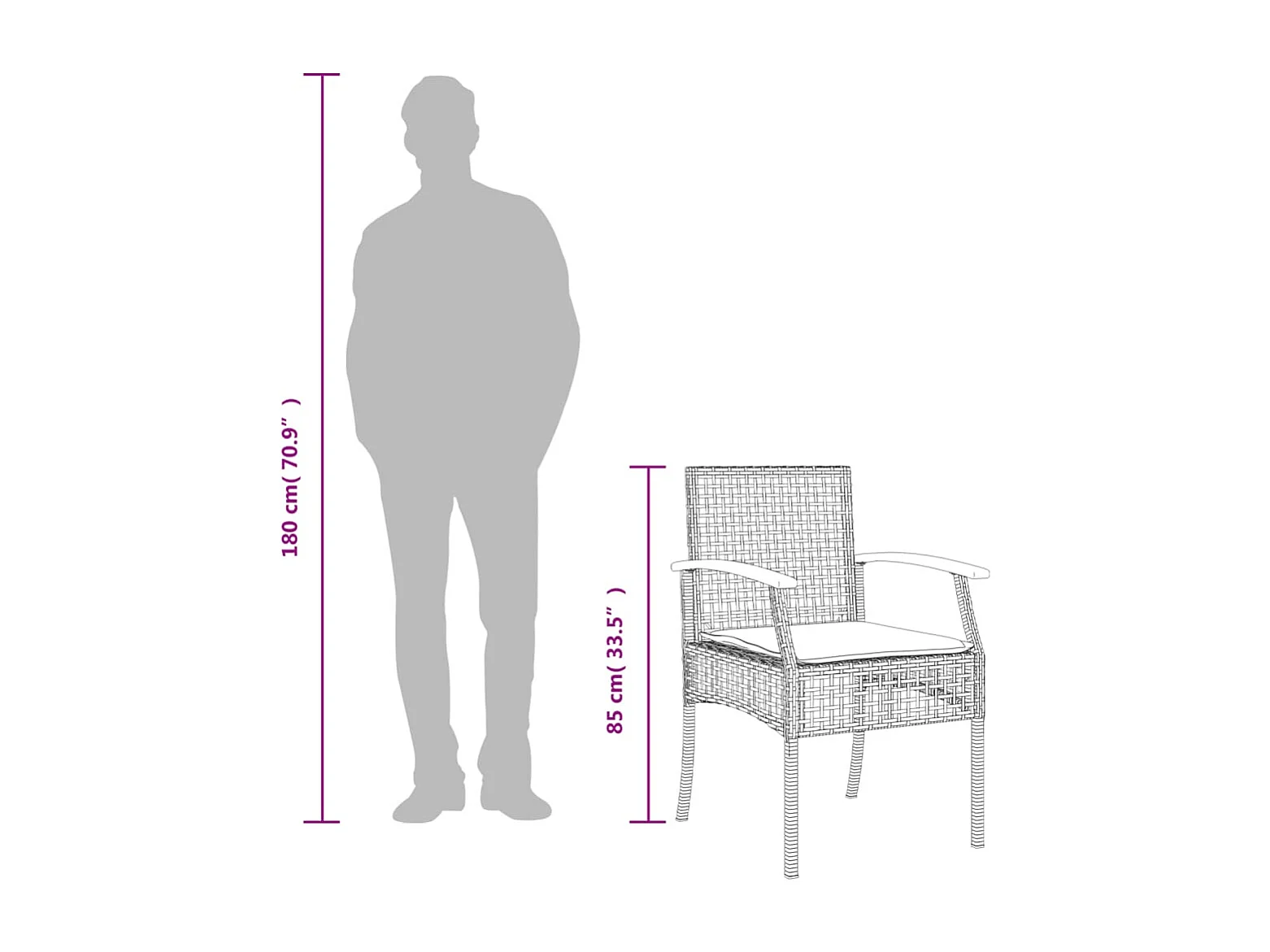Meryem Ensemble à manger de jardin 5 pcs coussins gris résine tressée