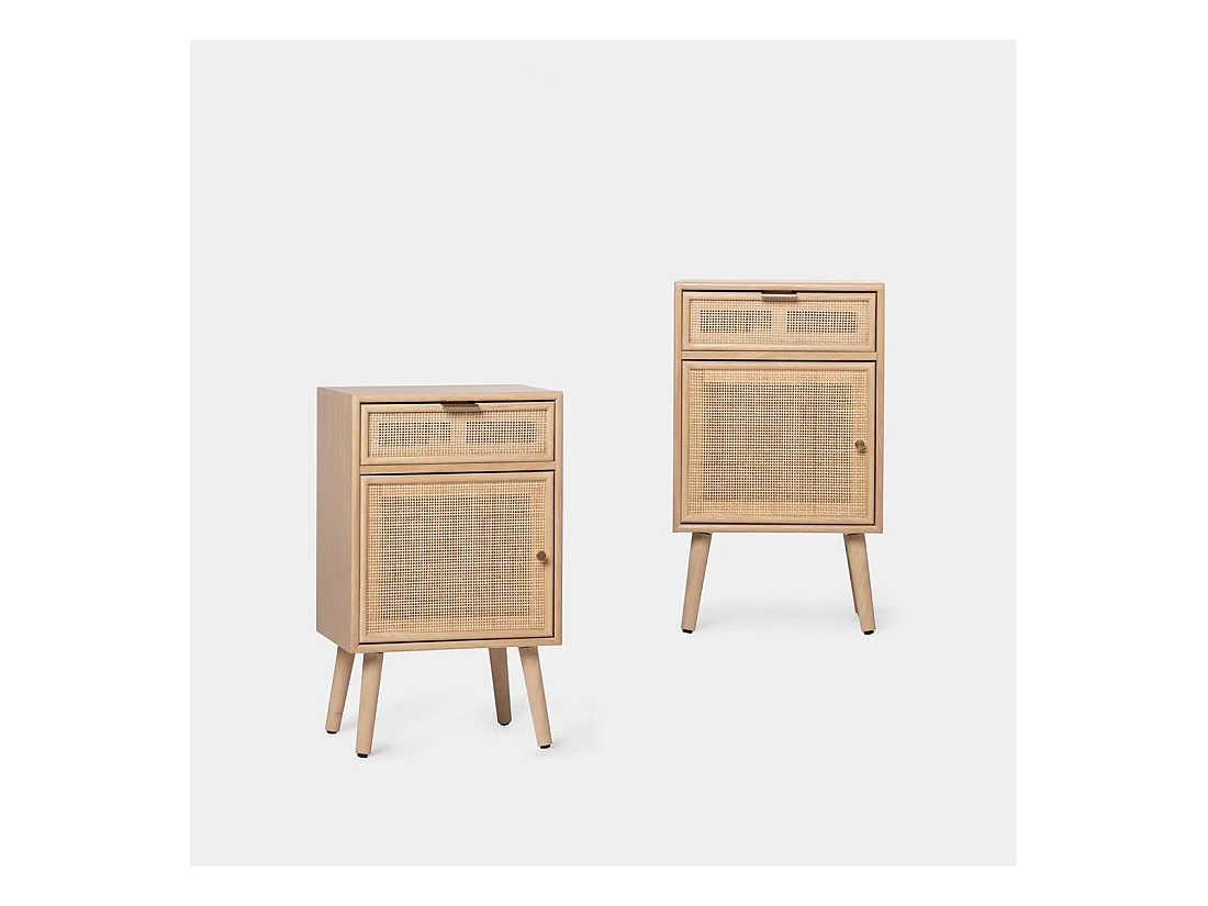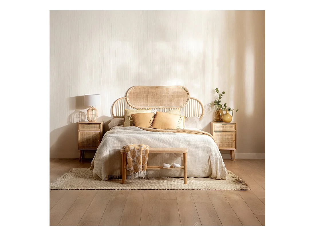 Table de chevet 2 tiroirs en rotin naturel 42x71 cm-Mapi