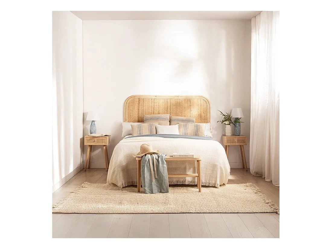 Table de chevet 2 tiroirs en rotin naturel 42x71 cm-Mapi