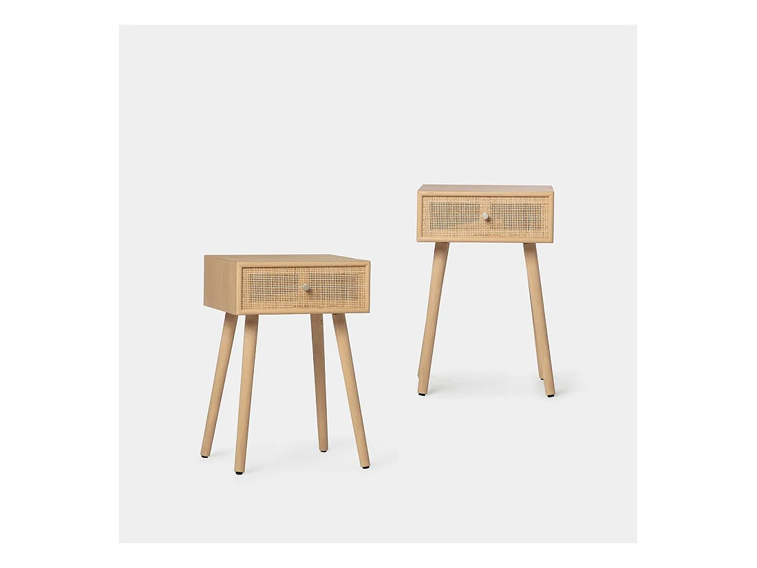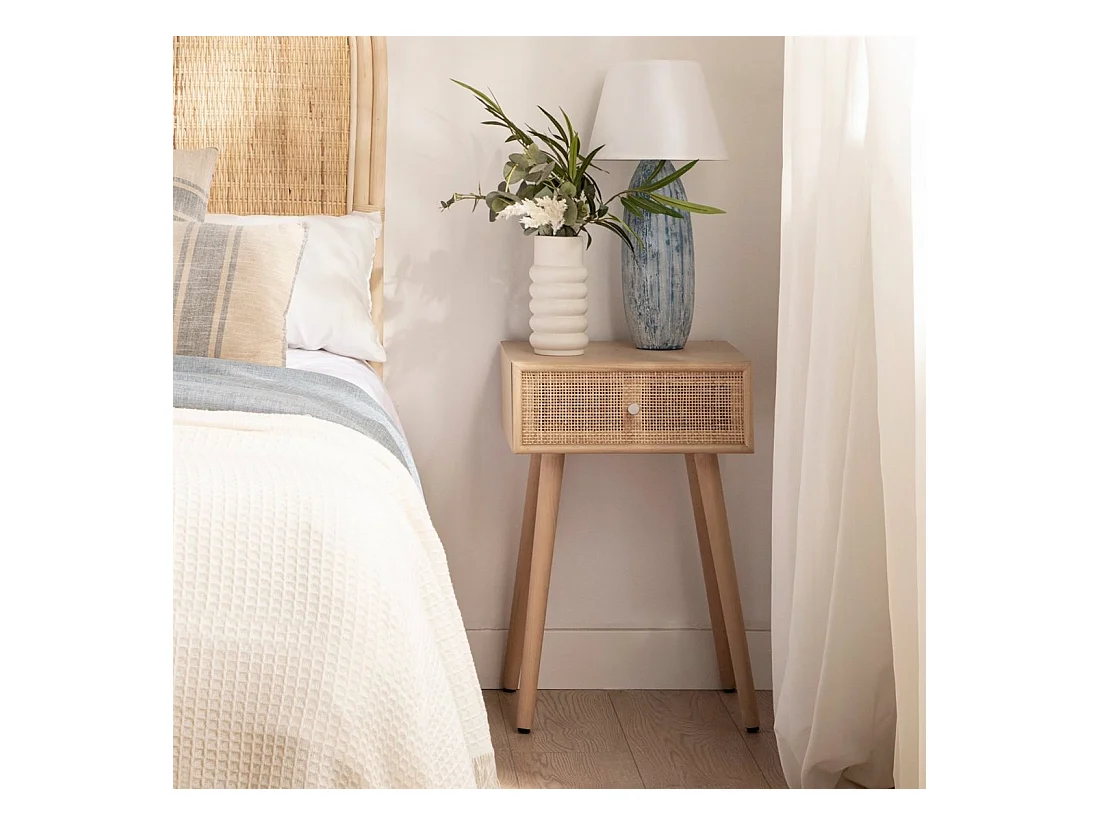 Table de chevet 1 tiroir en rotin naturel 40x61 cm-Lisa