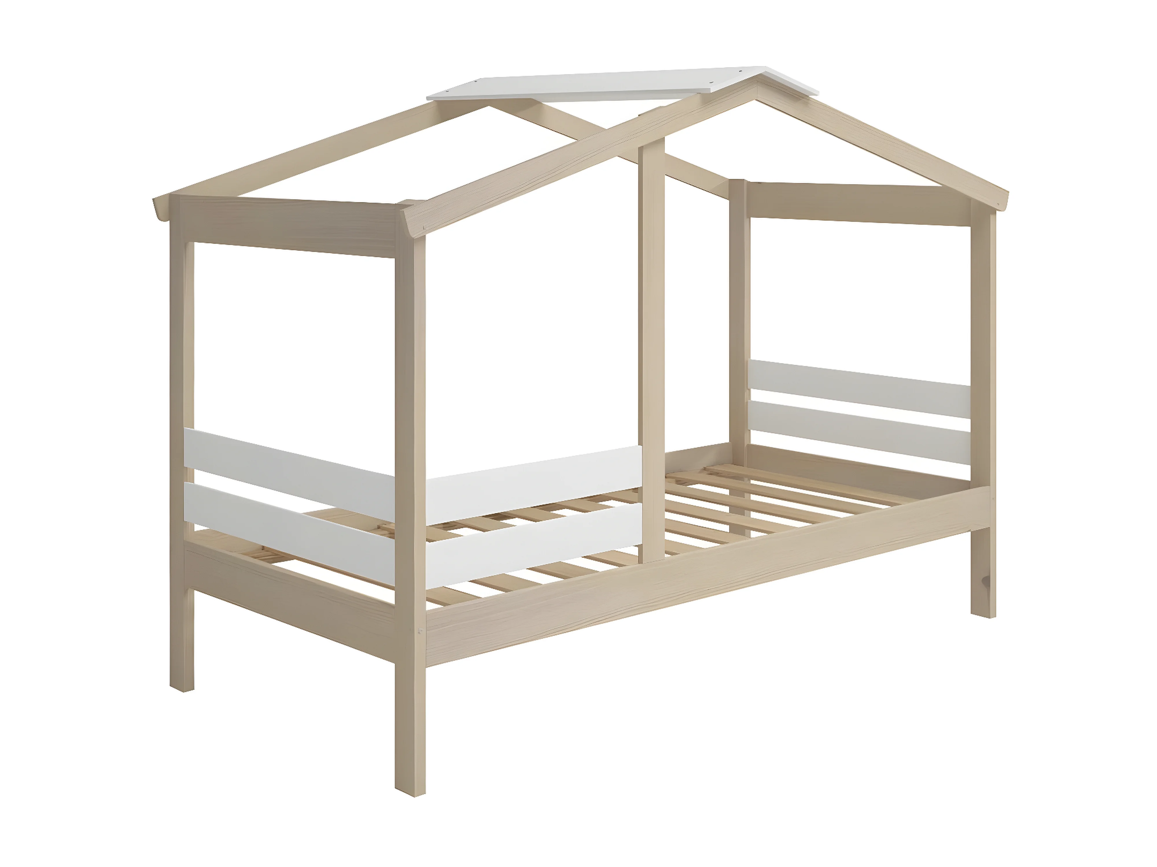 MESSA - Lit Cabane 90x190cm MDF et Pin Coloris Blanc et Naturel