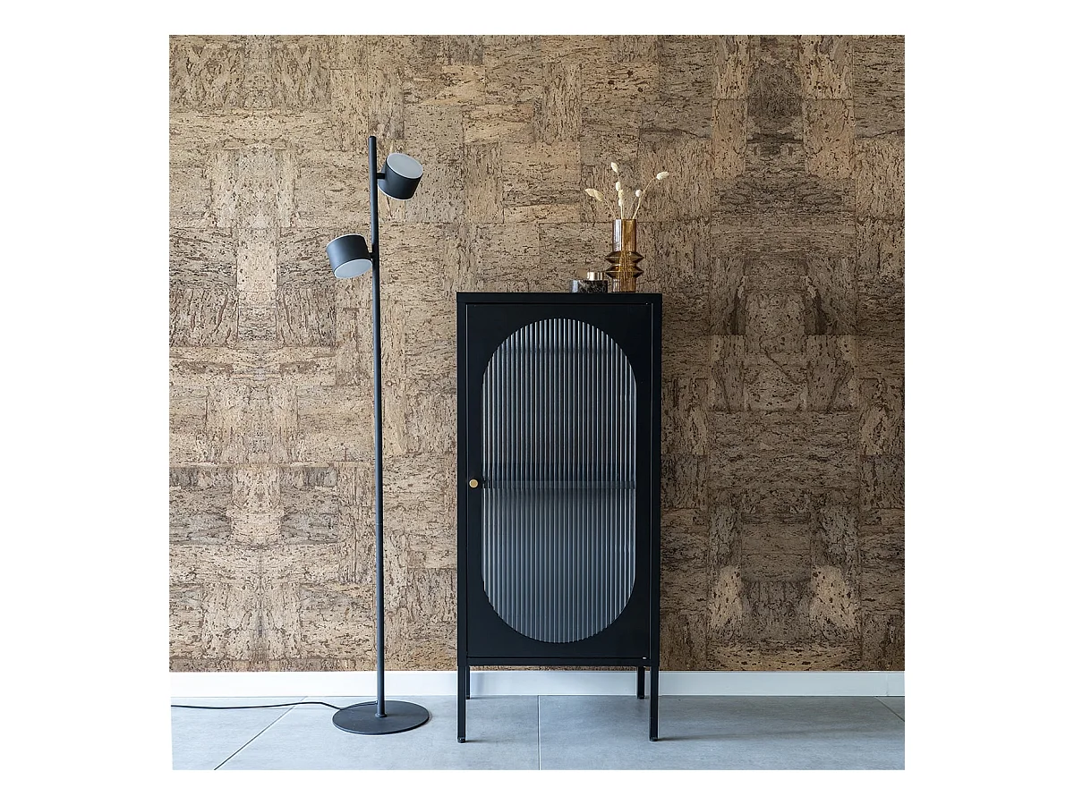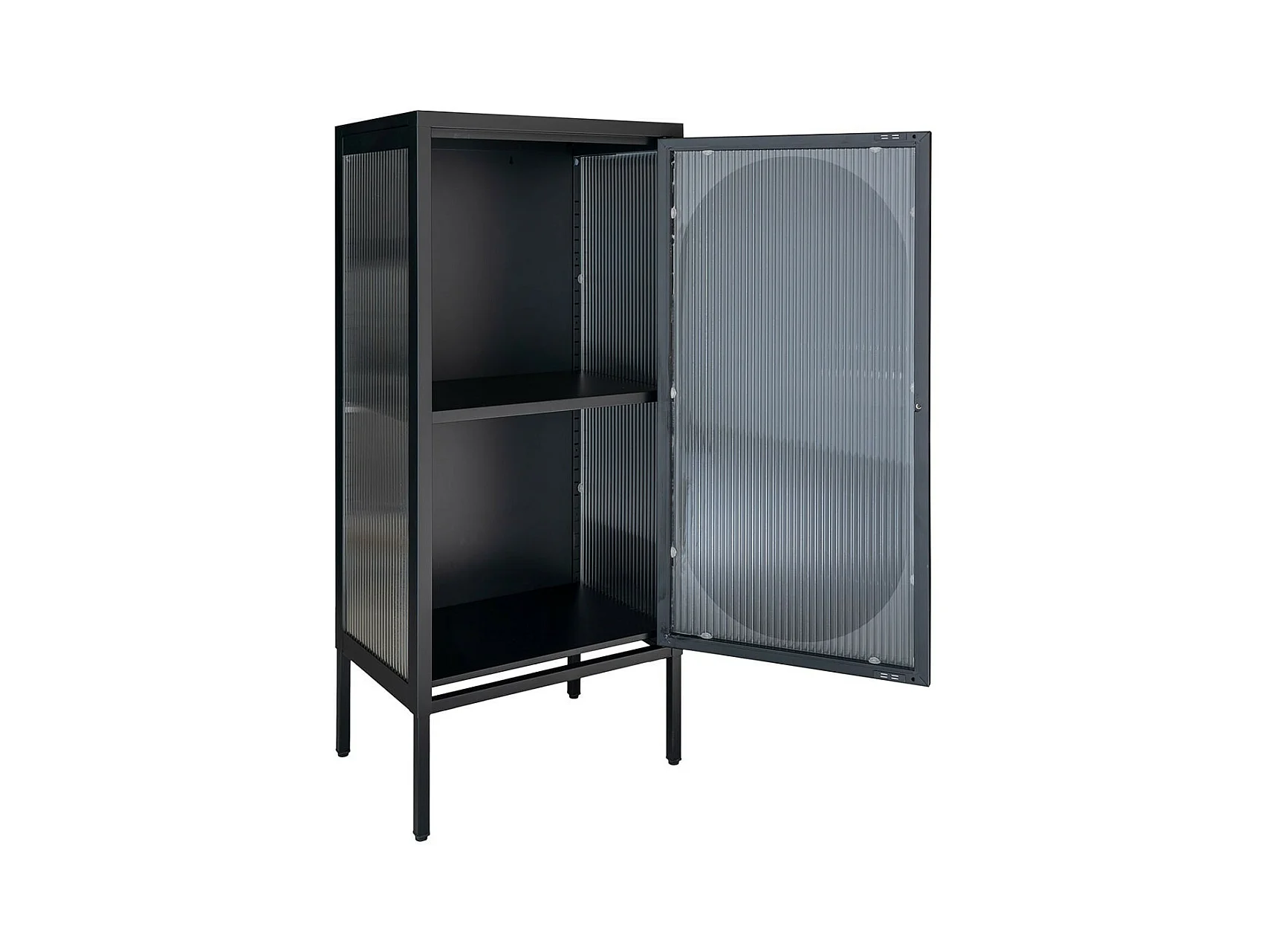 METOS - Vitrine Basse 1 Porte Acier Noir et Verre Ondulé