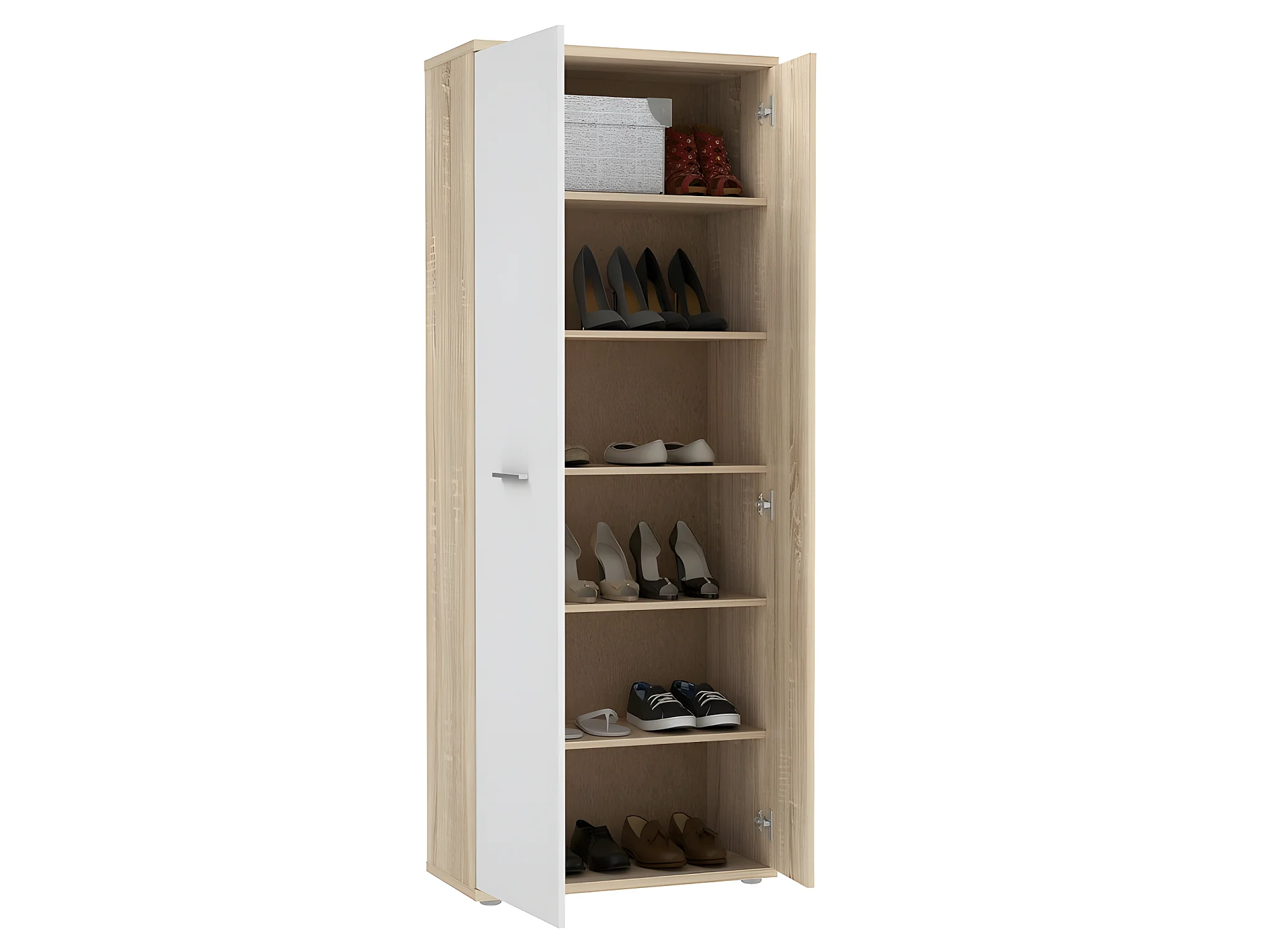Meuble à chaussure 2 portes blanc décor chêne clair - CLASS