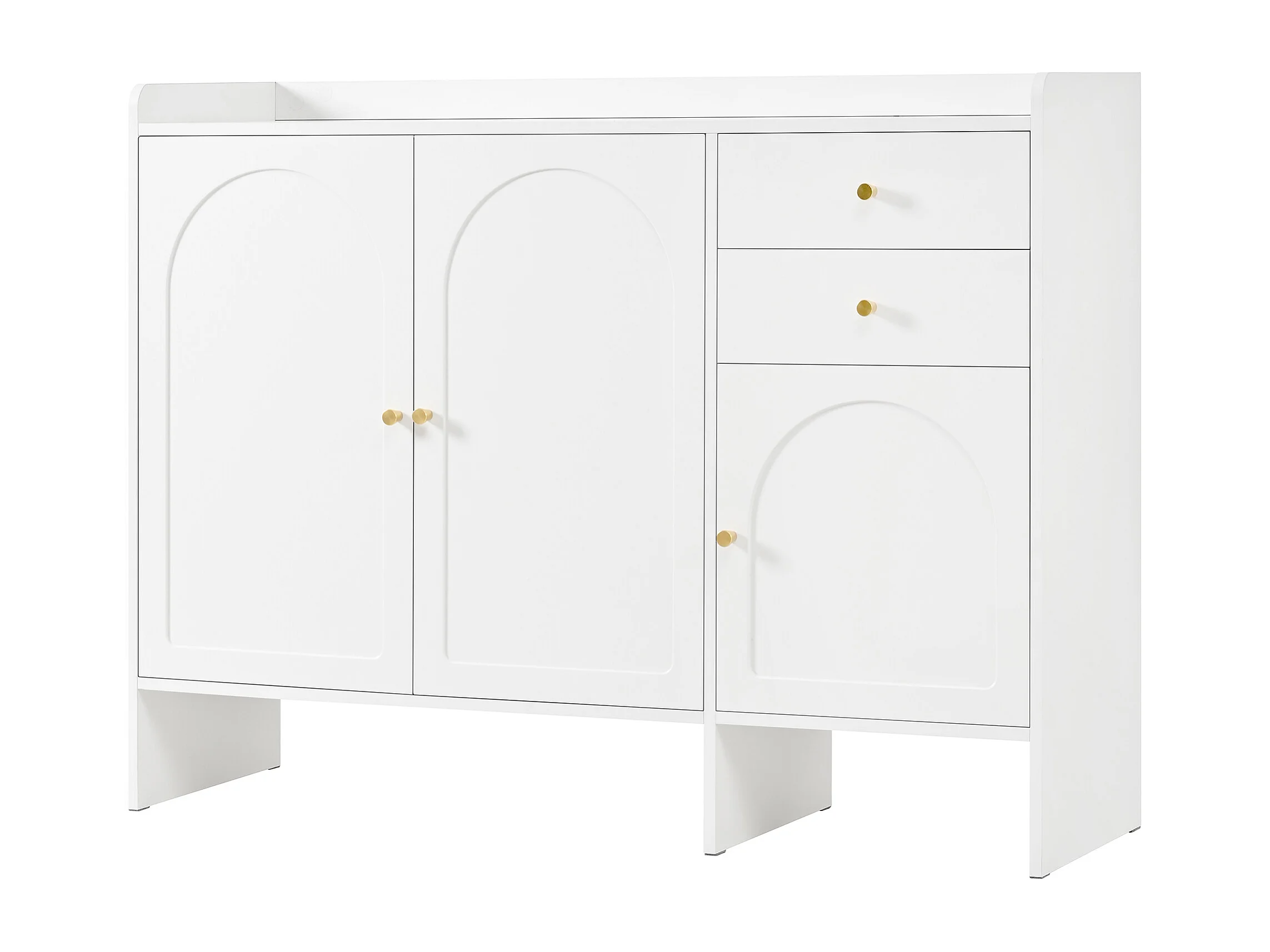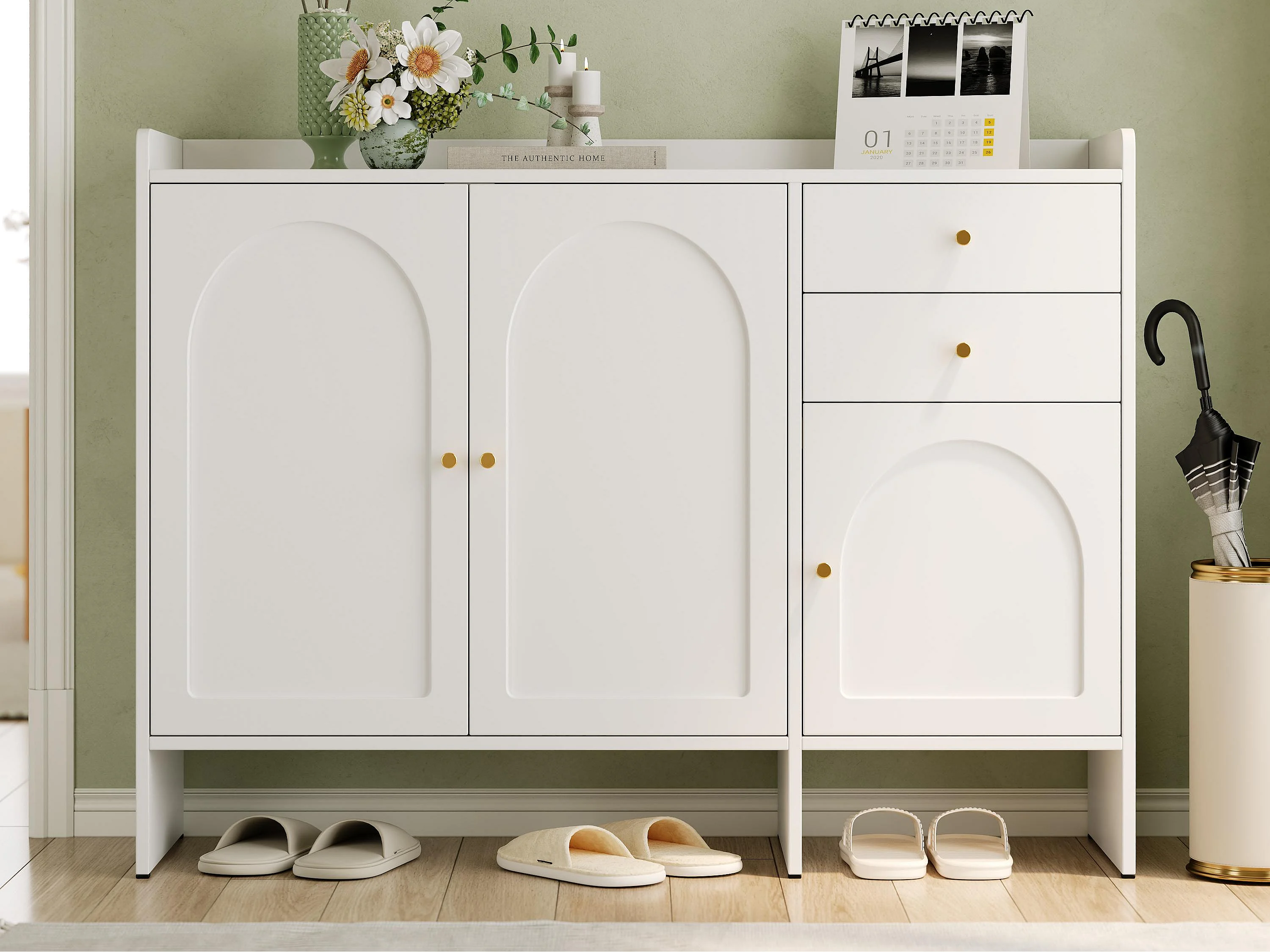 Meuble à chaussures 120x35x90cm - avec 3 portes et 2 tiroirs - poignée en métal - Blanc