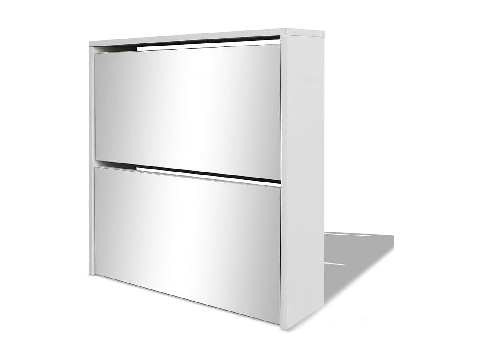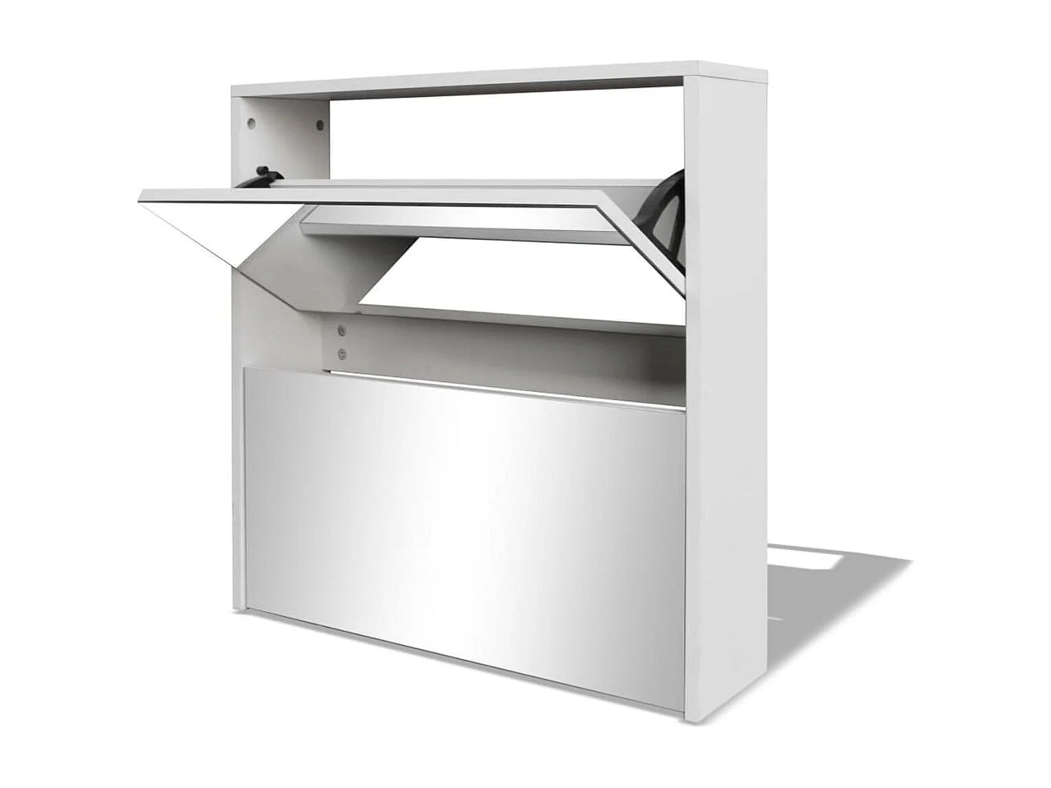 Armoire à chaussures 2 portes rabattables avec miroir Ranka H 67cm – Design moderne et élégant-Couleur Blanc brillant