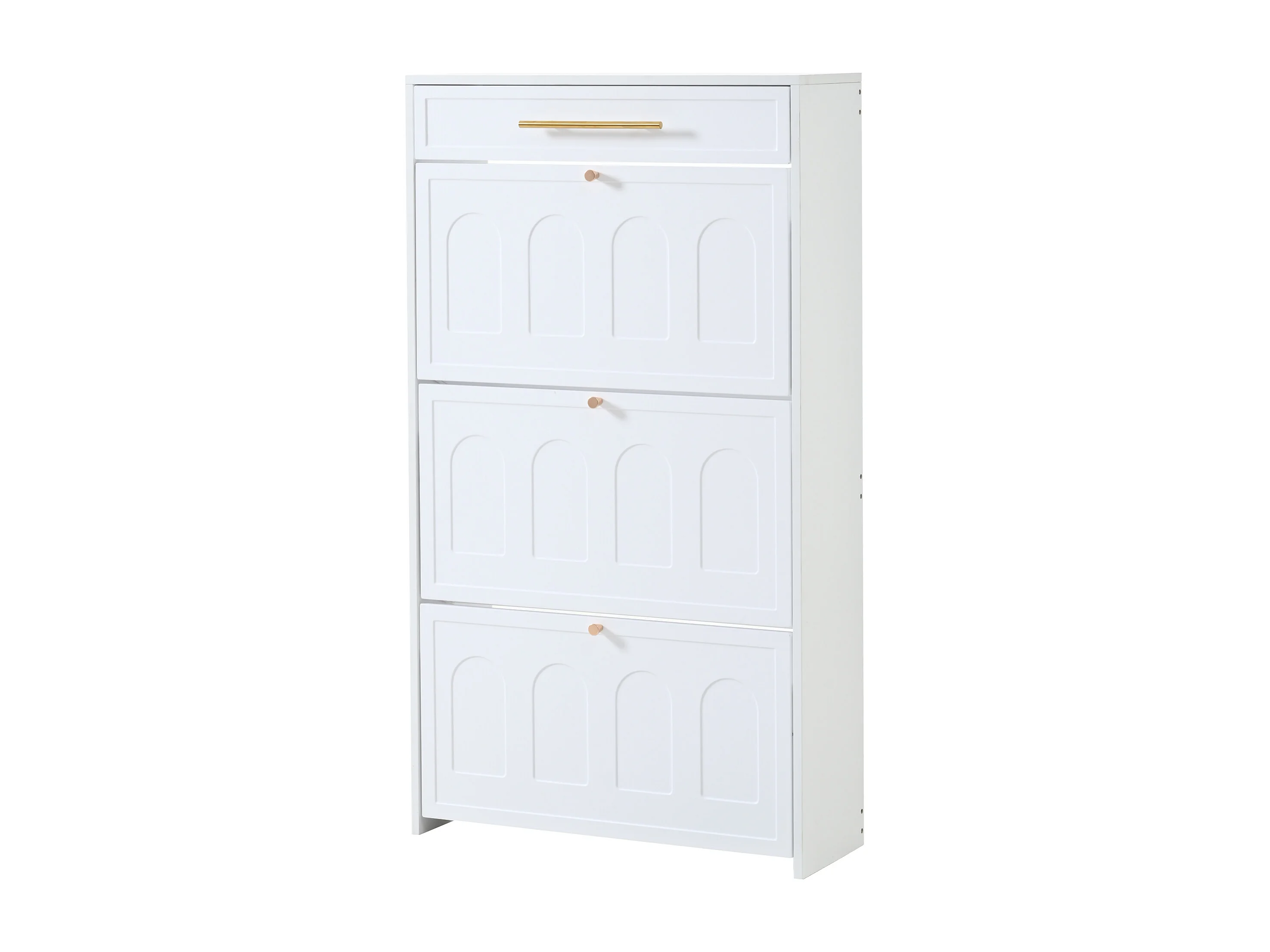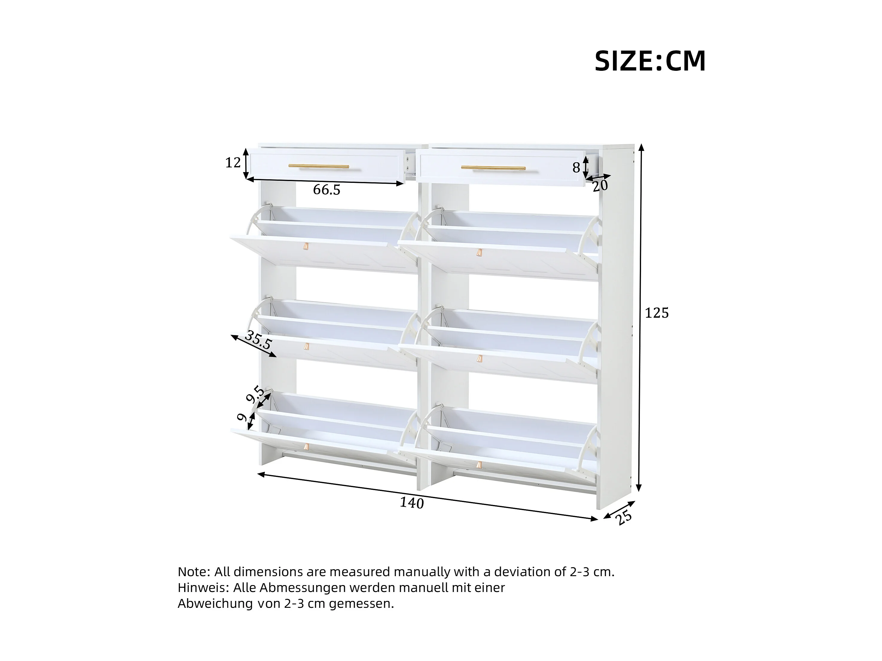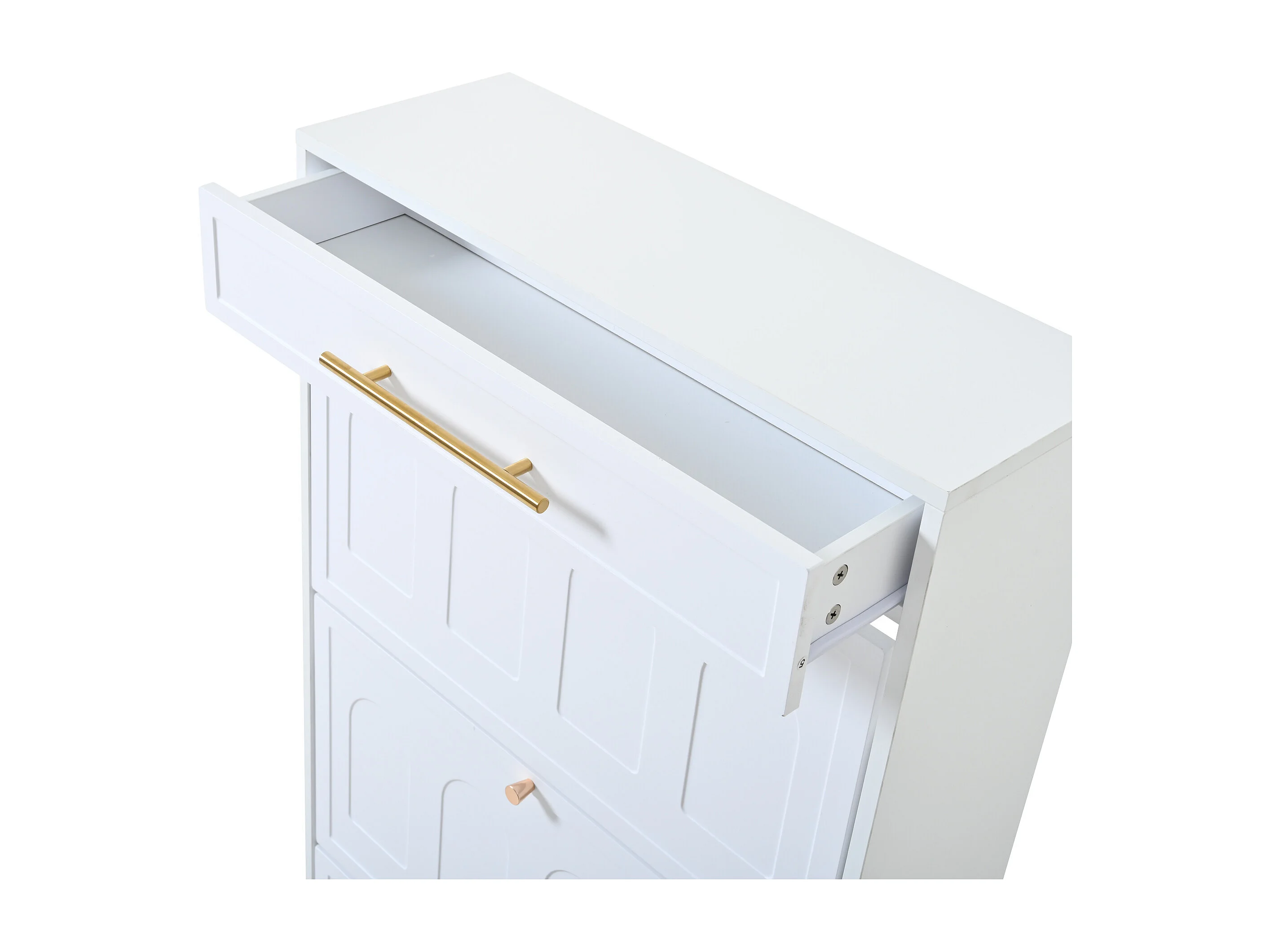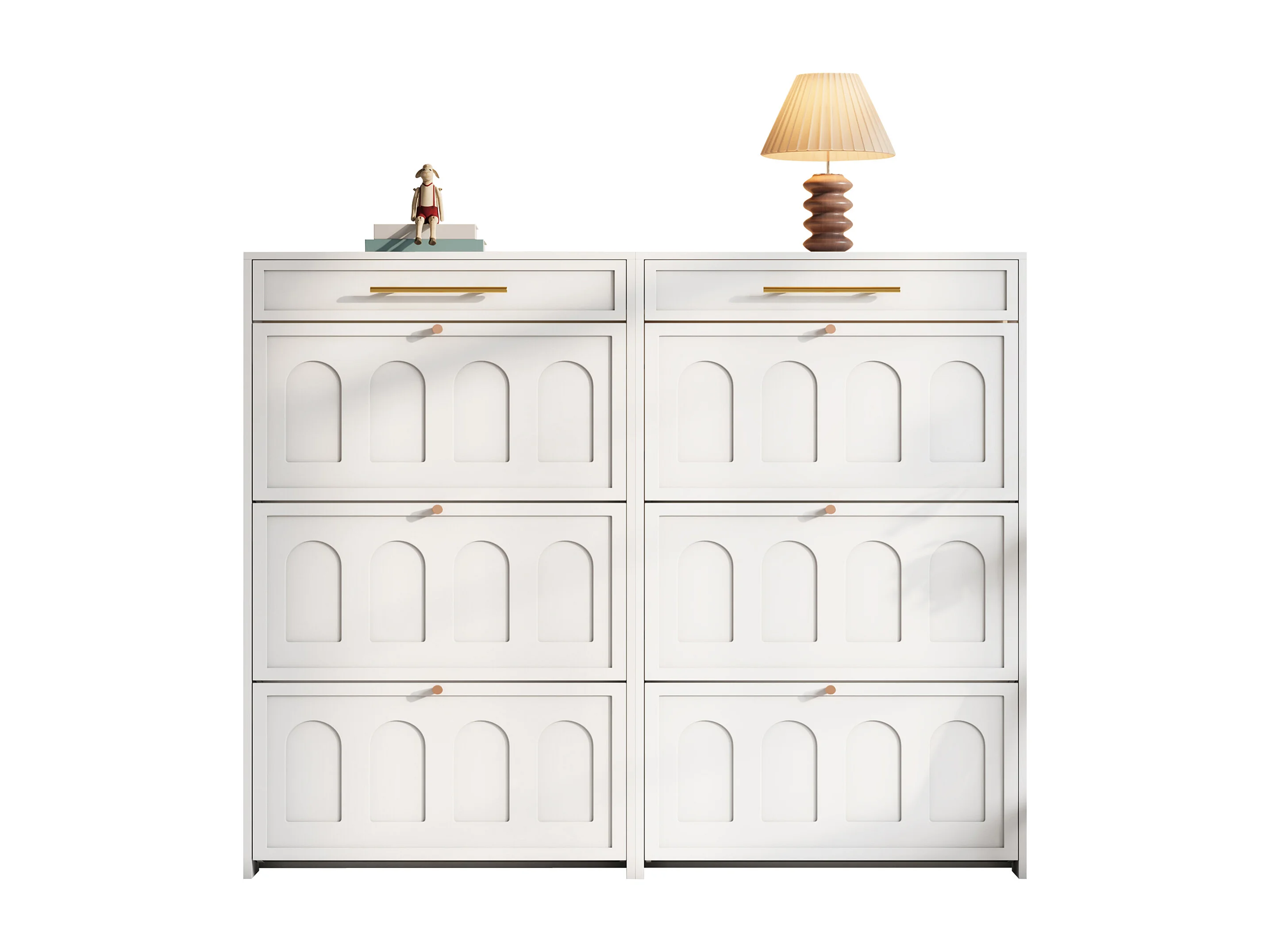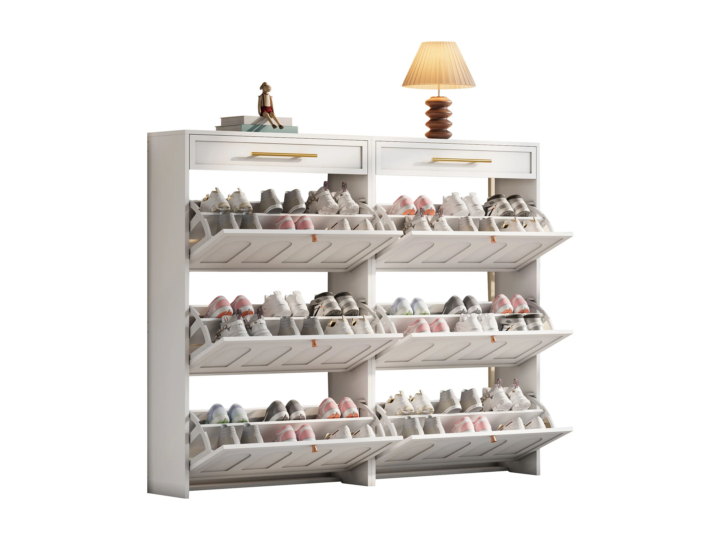 Meuble à chaussures 2 pièces en MDF blanc - Avec 6 abattants et 2 tiroirs