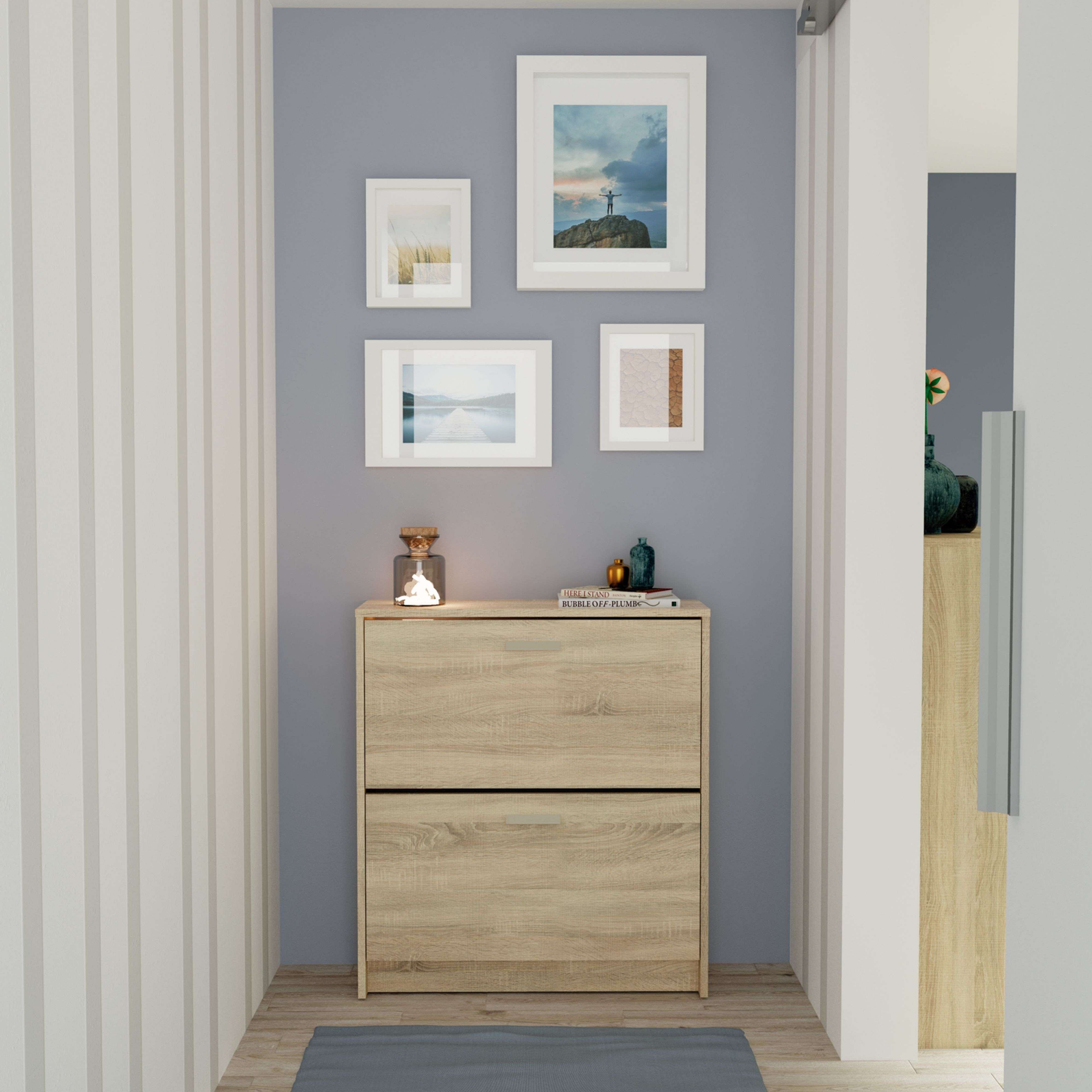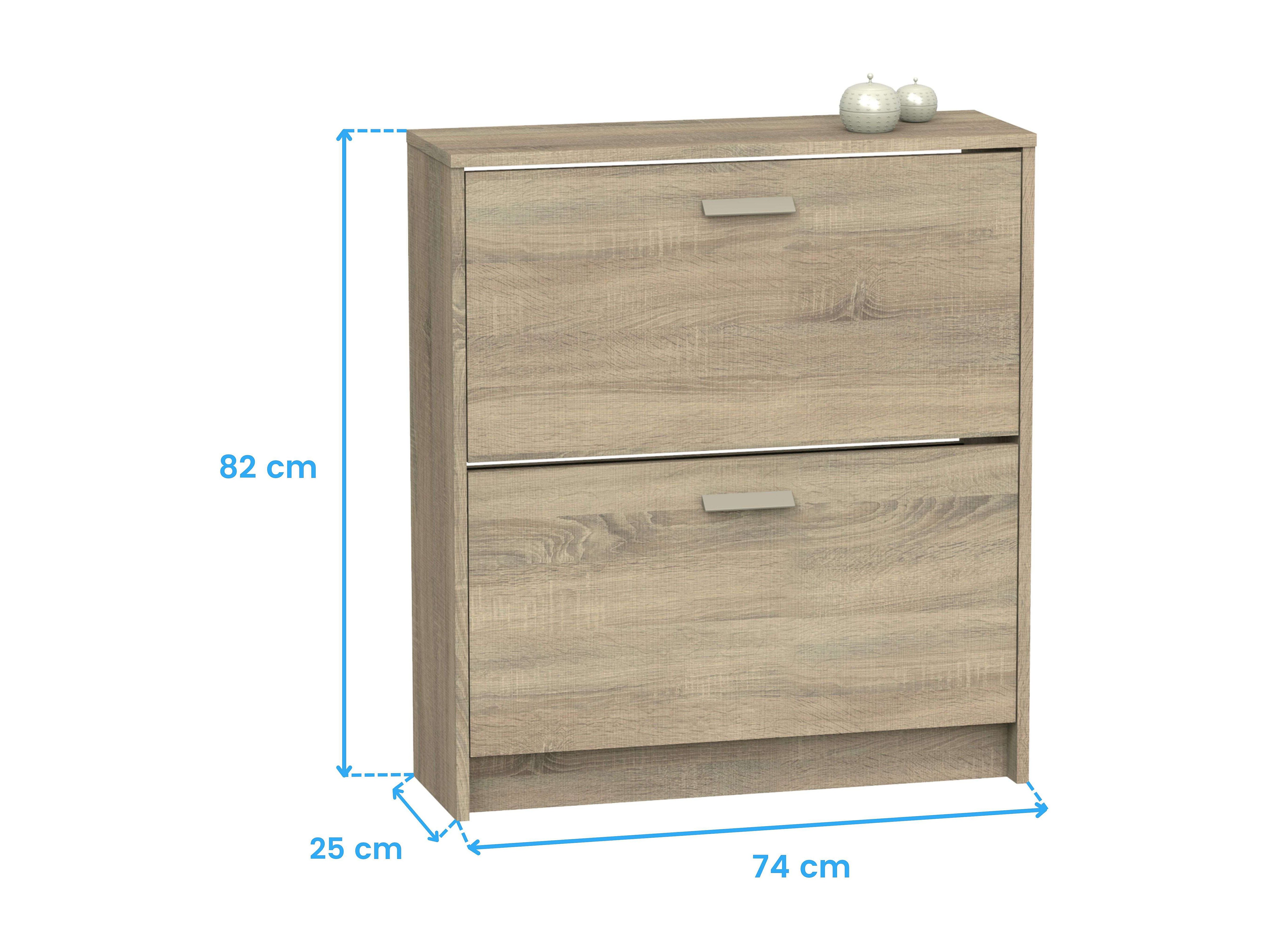 Meuble à chaussures 2 portes Tibet, suspendu, chêne cambrien, 82x74x25 cm