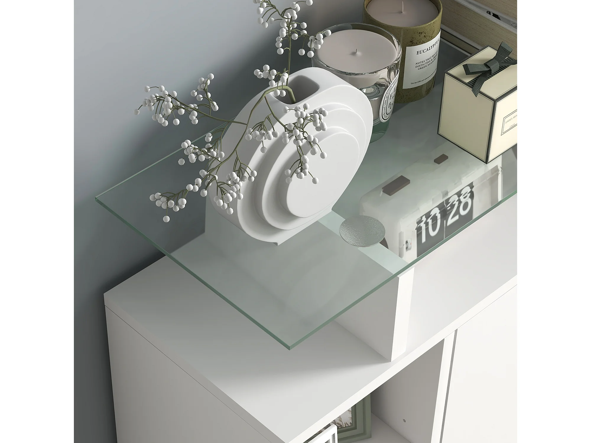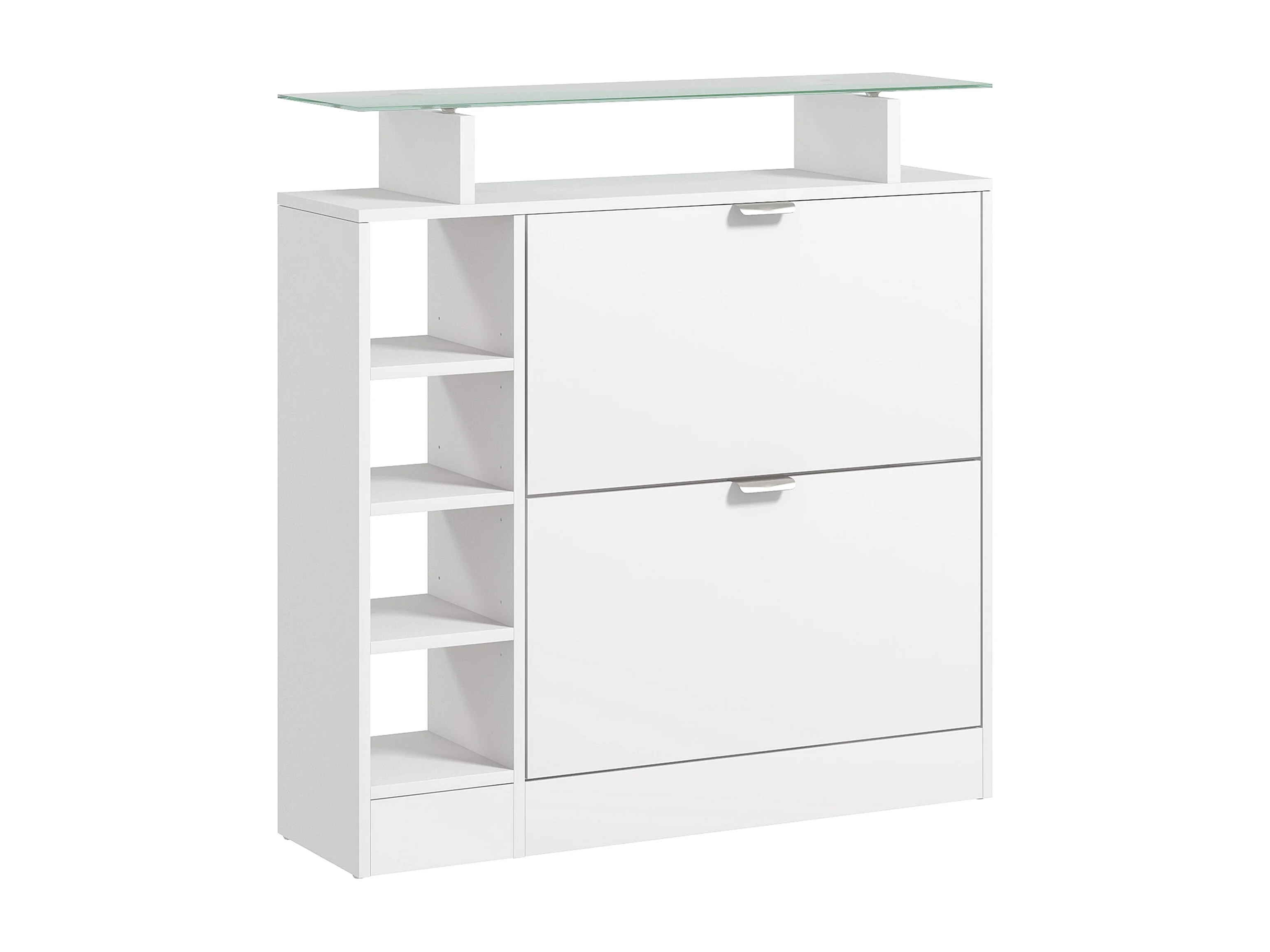 Meuble à chaussures 2 tiroirs rabattables plateau verre étagères réglables blanc