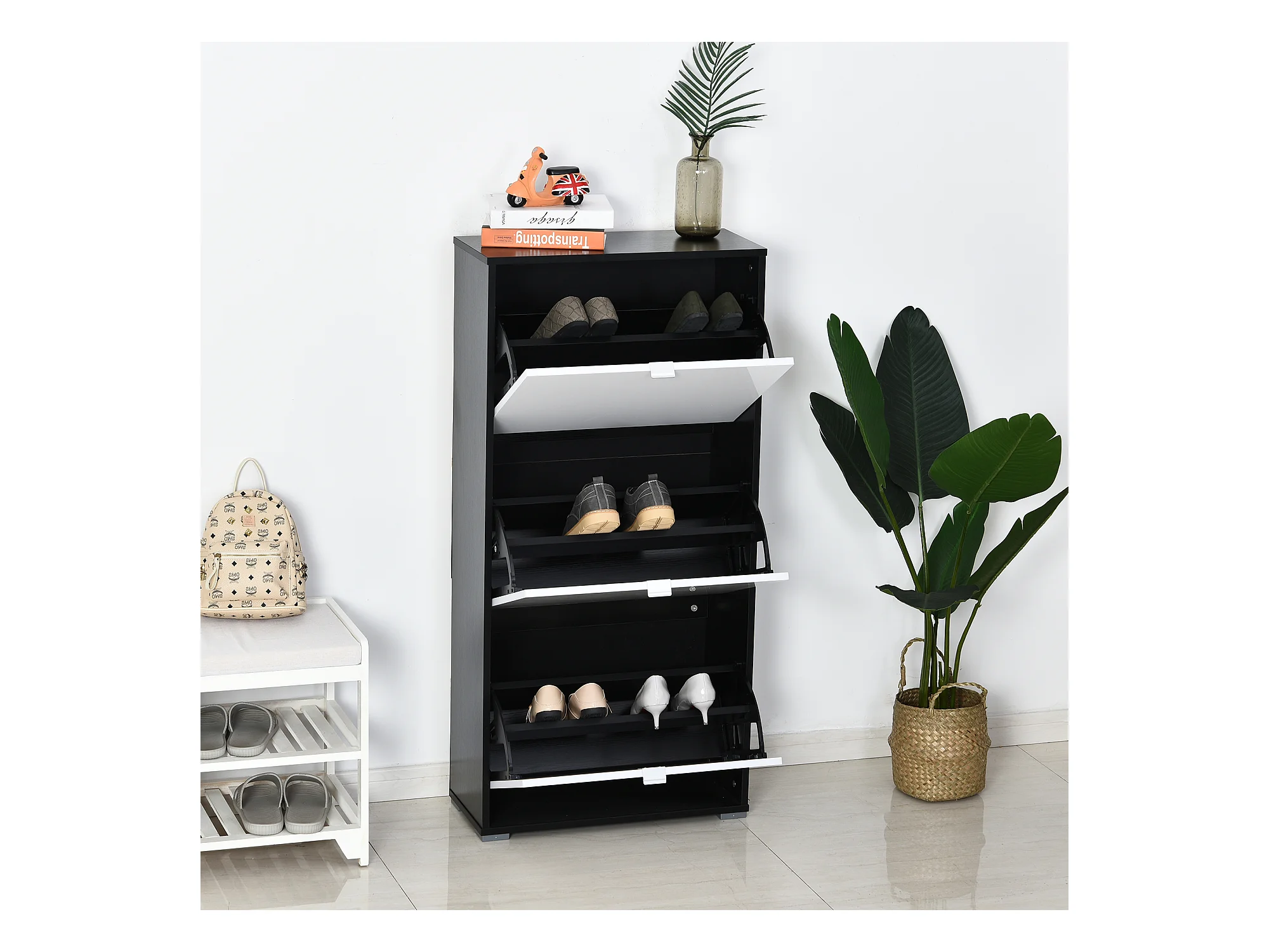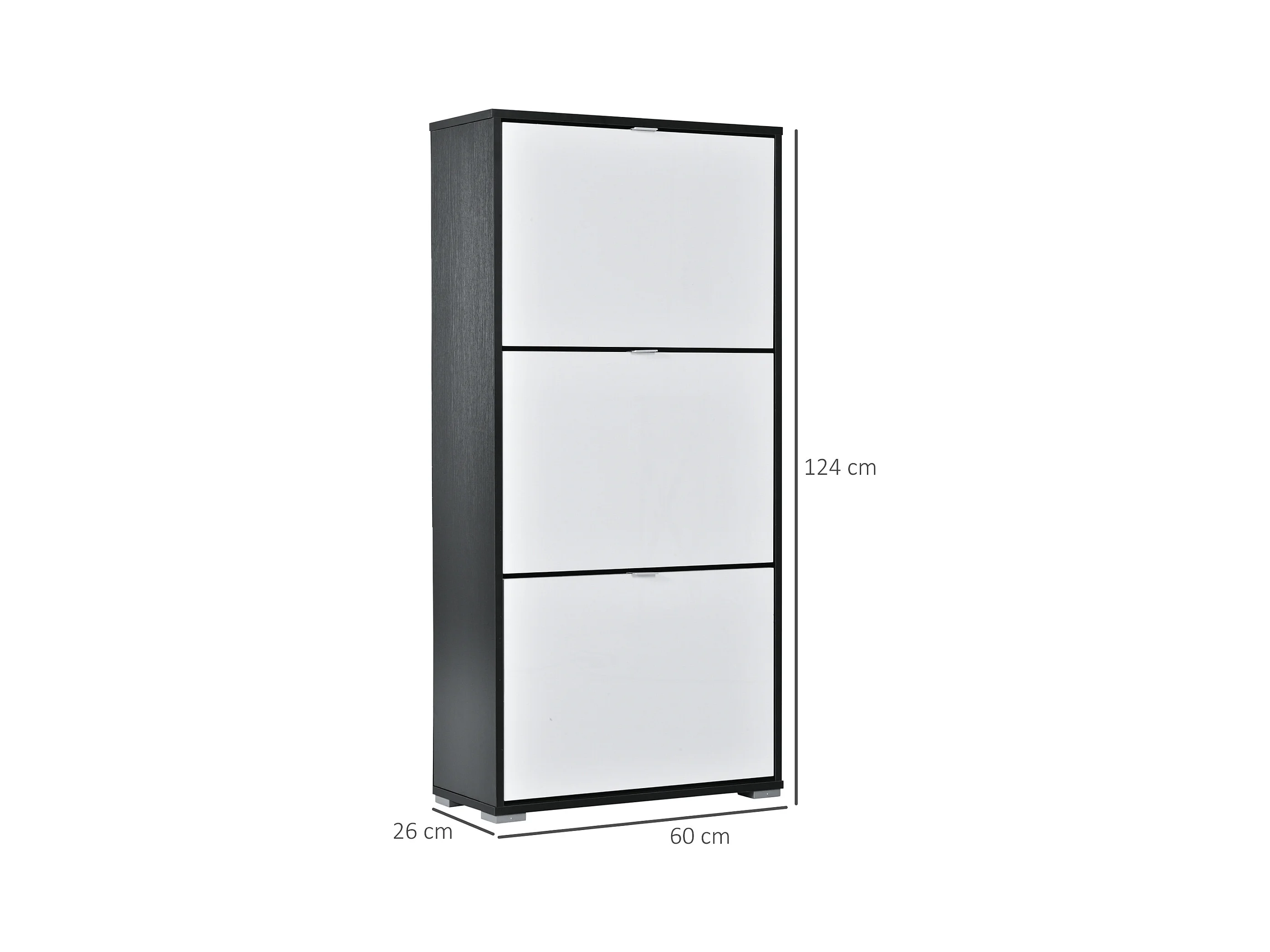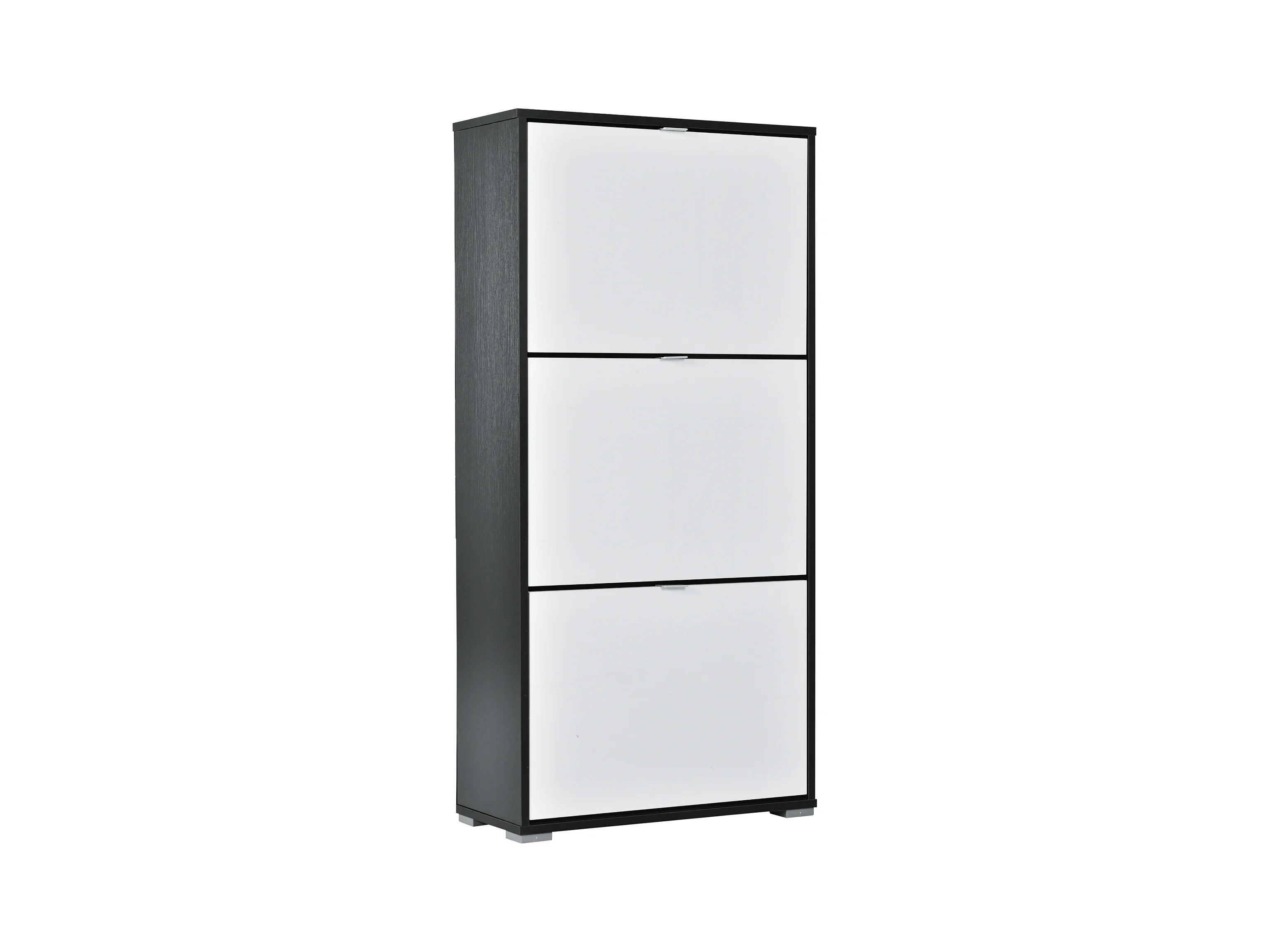 Meuble à chaussures 3 portes abattantes 3 compartiments MDF noir blanc laqué