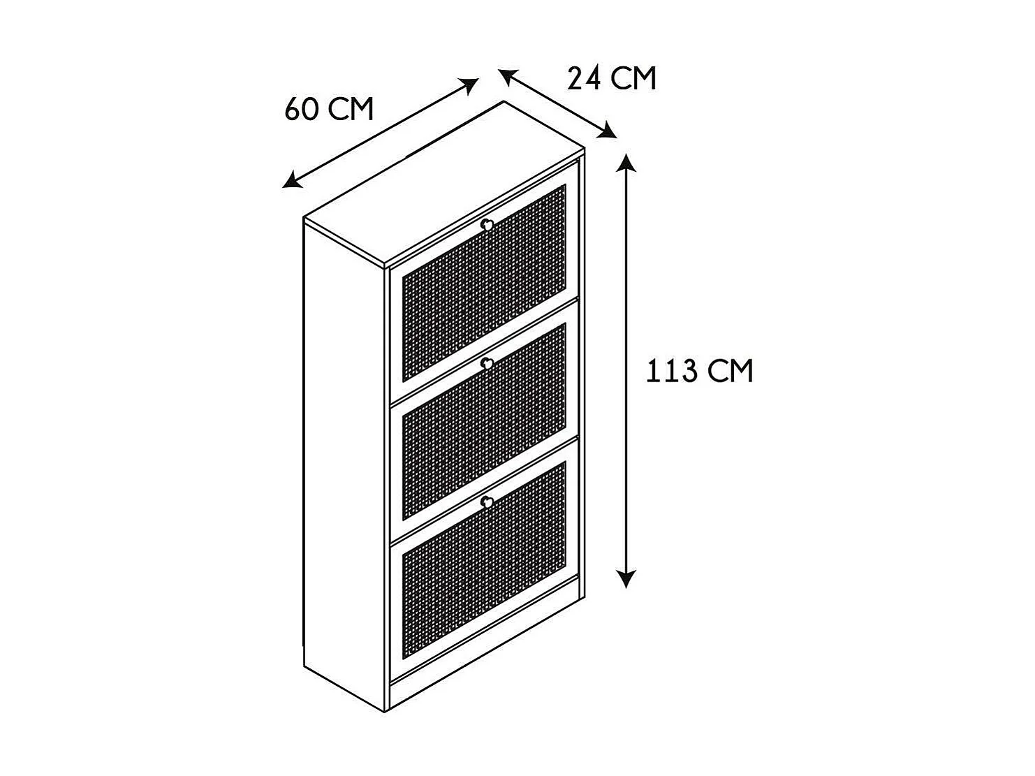 Meuble à chaussures 3 portes Bali en cannage - Marron