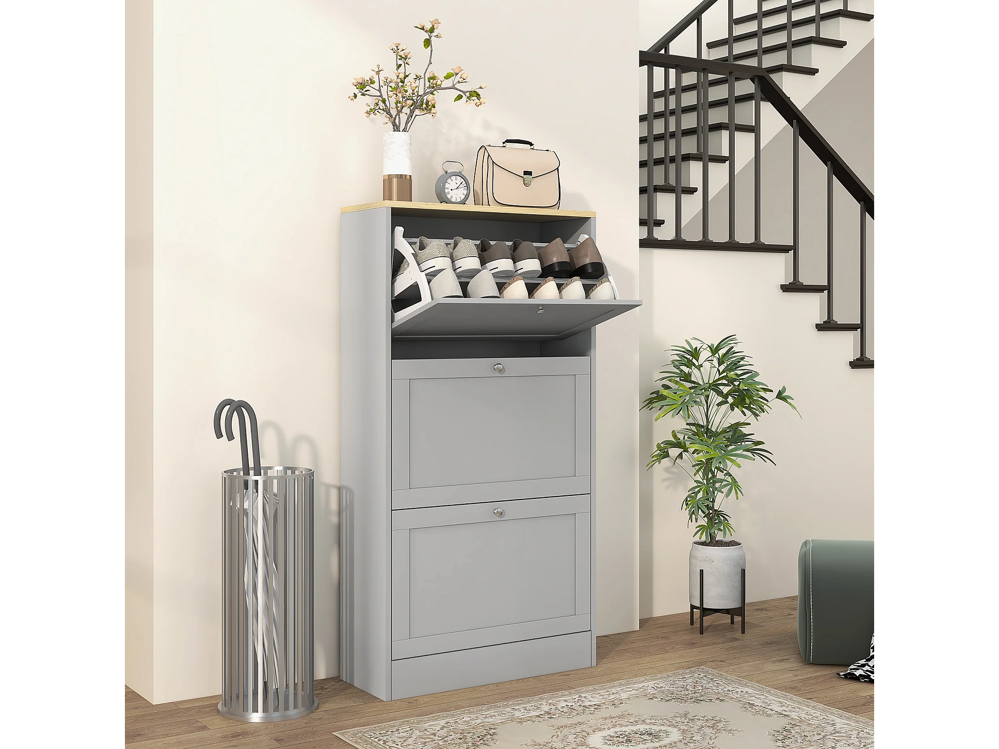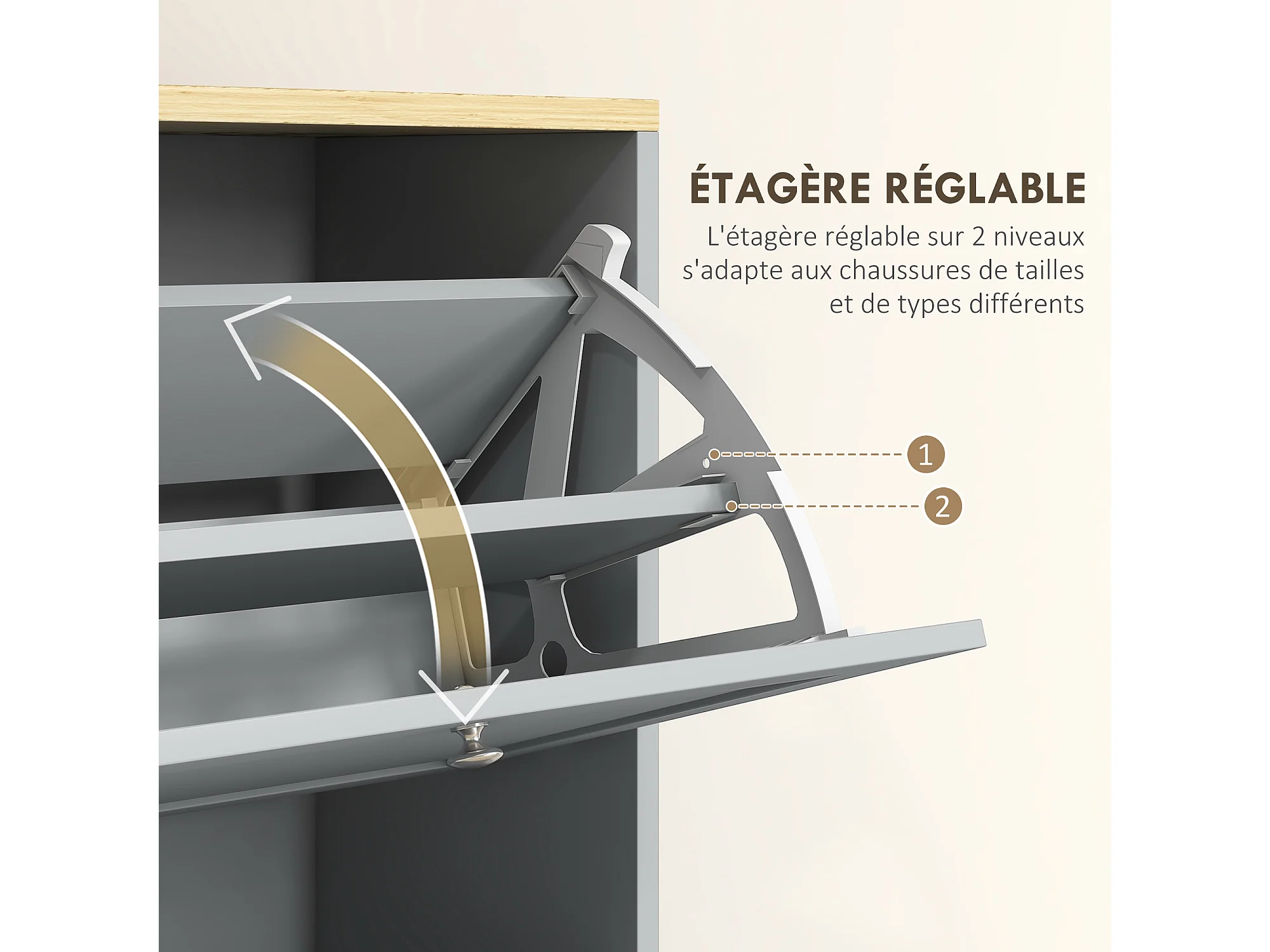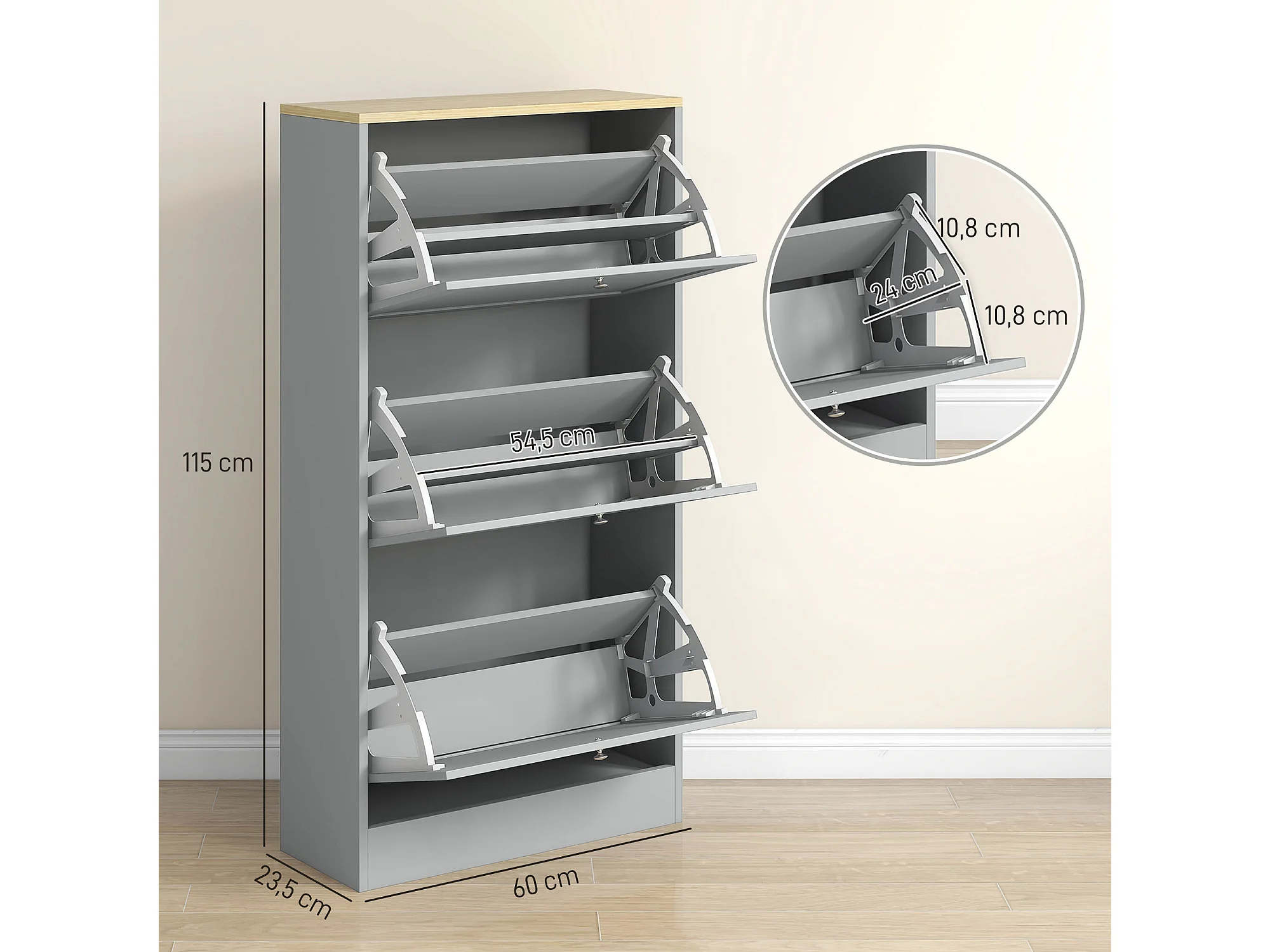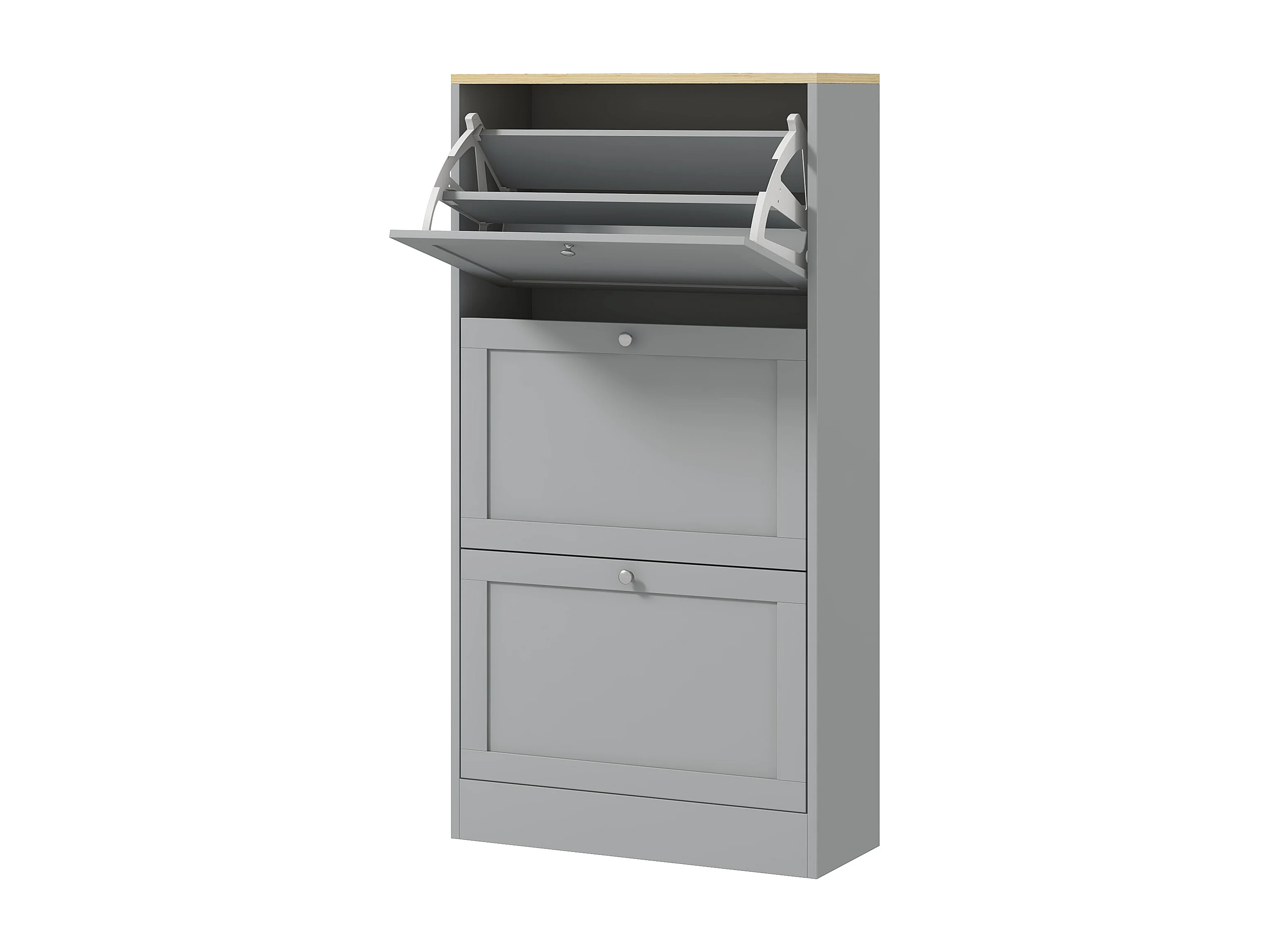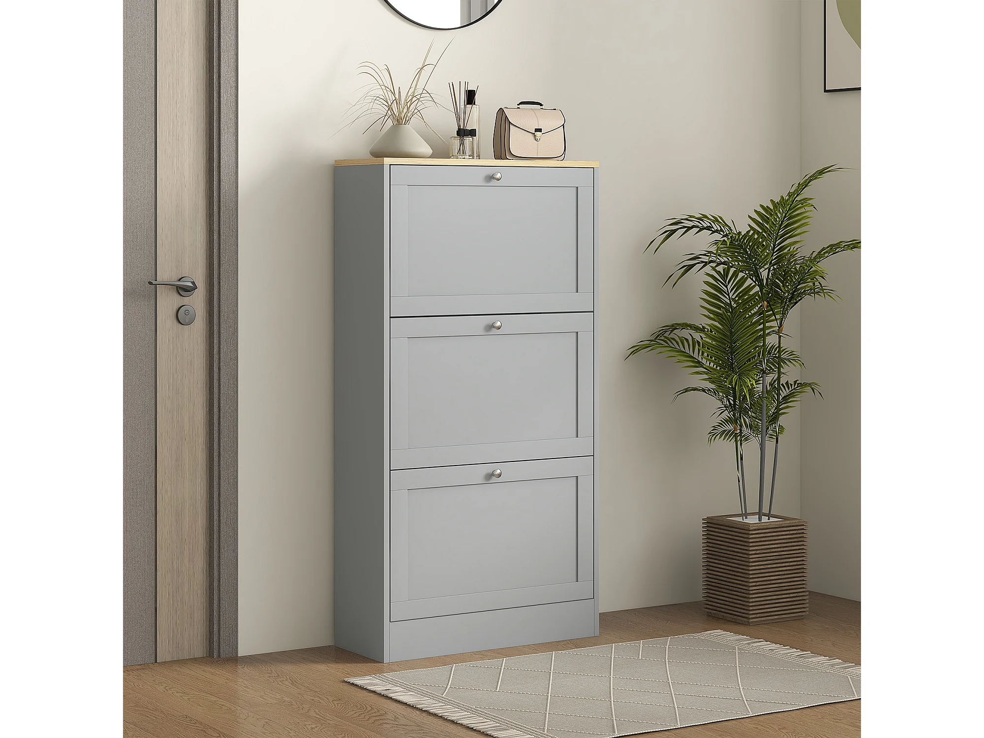 Meuble à chaussures 3 portes battantes style classique chic gris effet bois clair