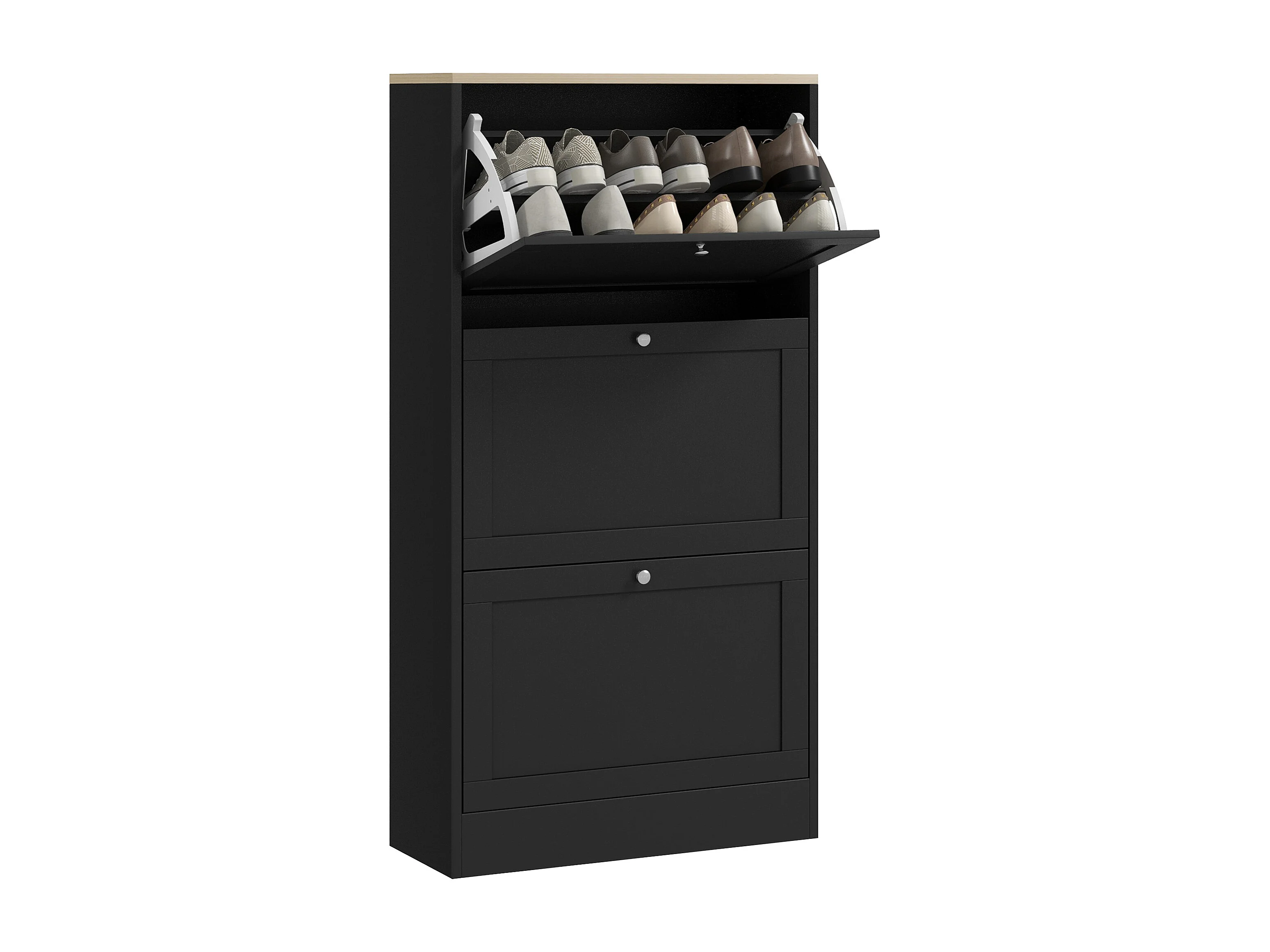 Meuble à chaussures 3 portes battantes style classique chic noir effet bois clair