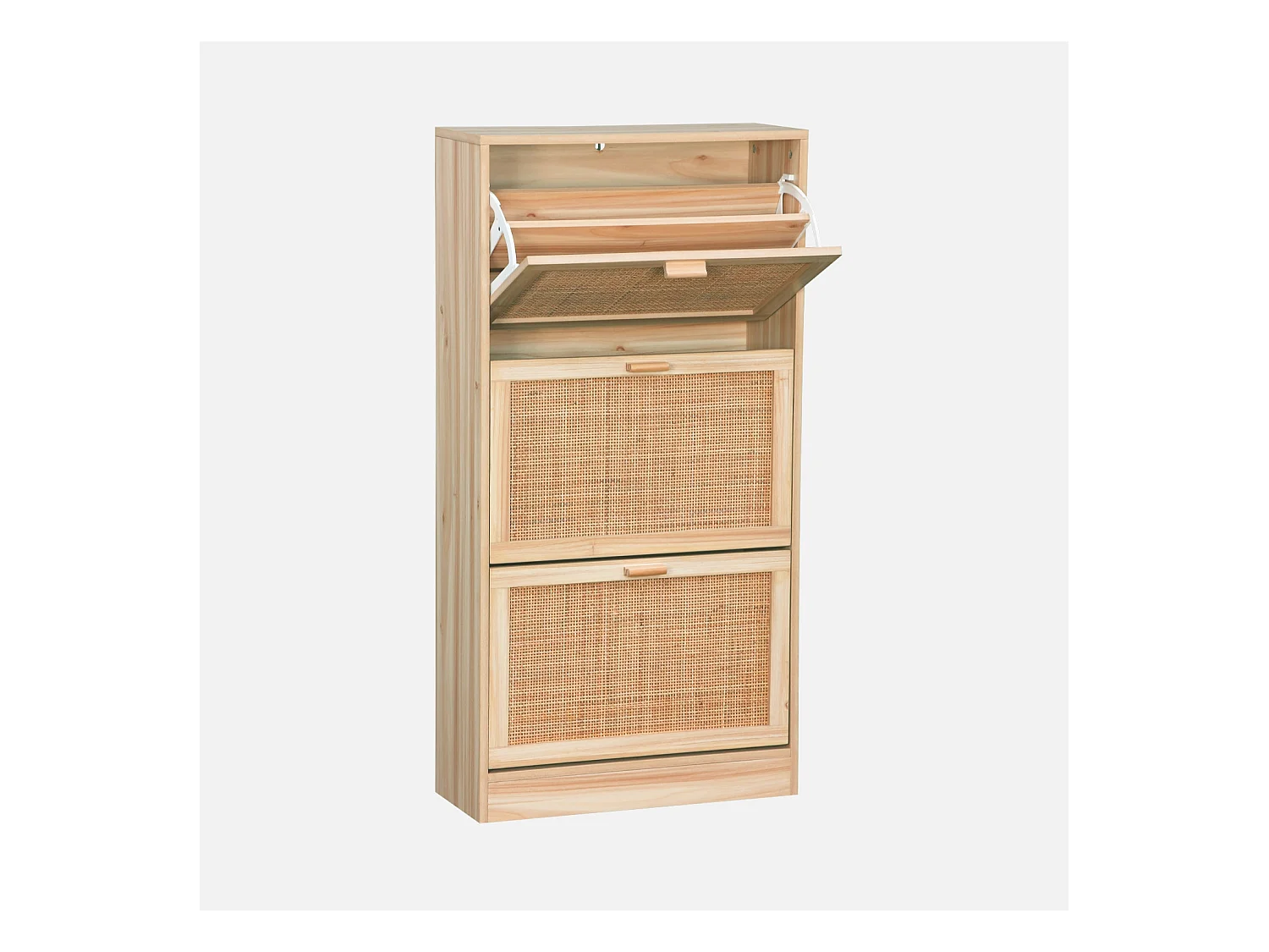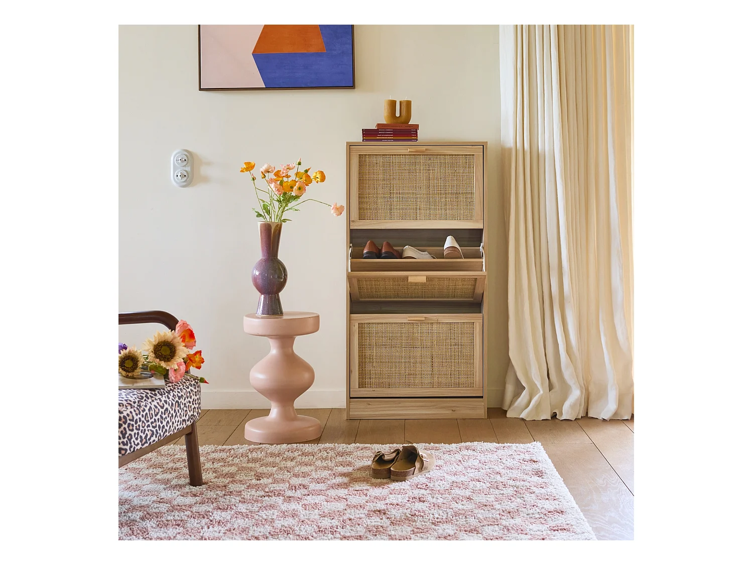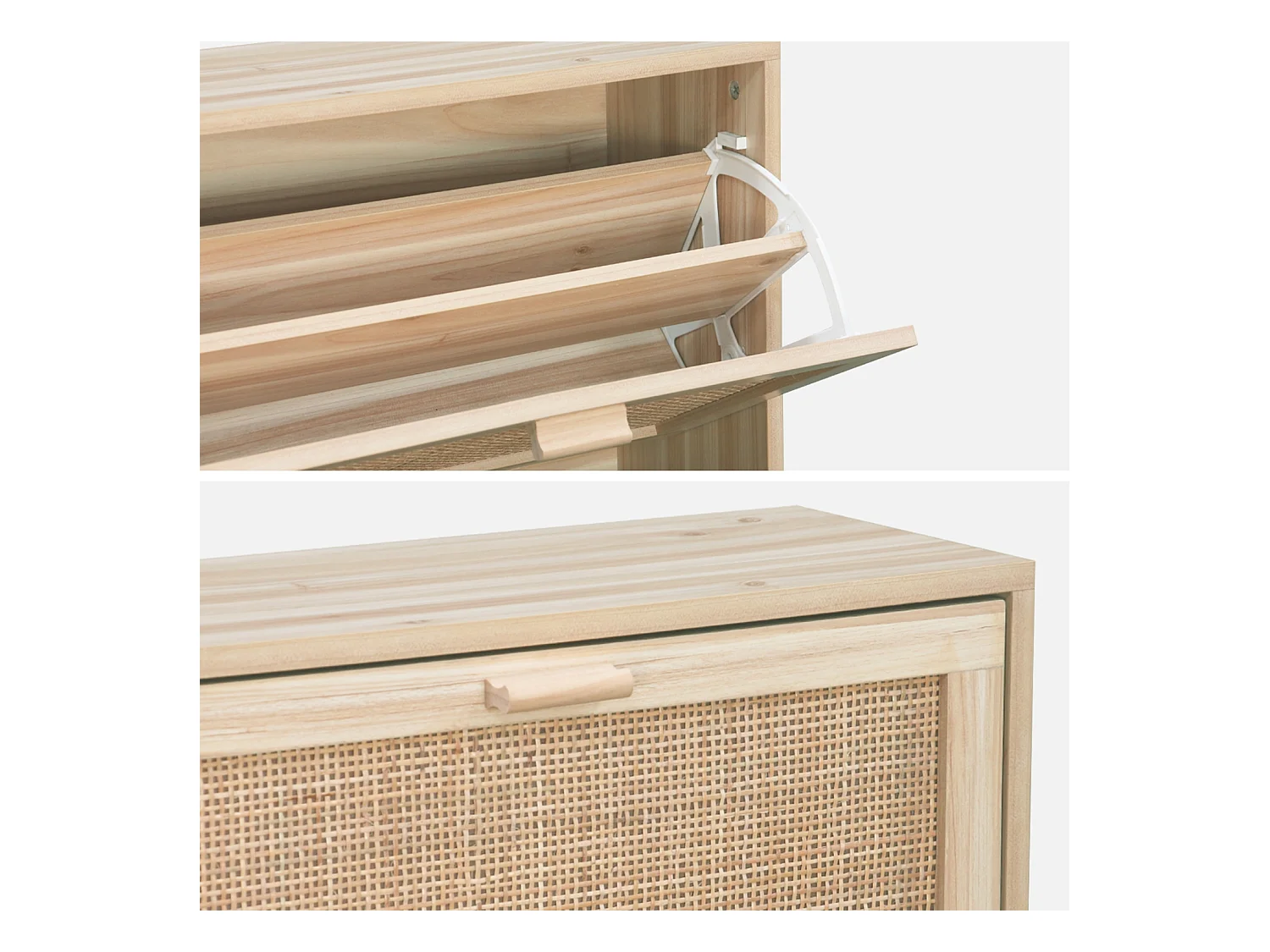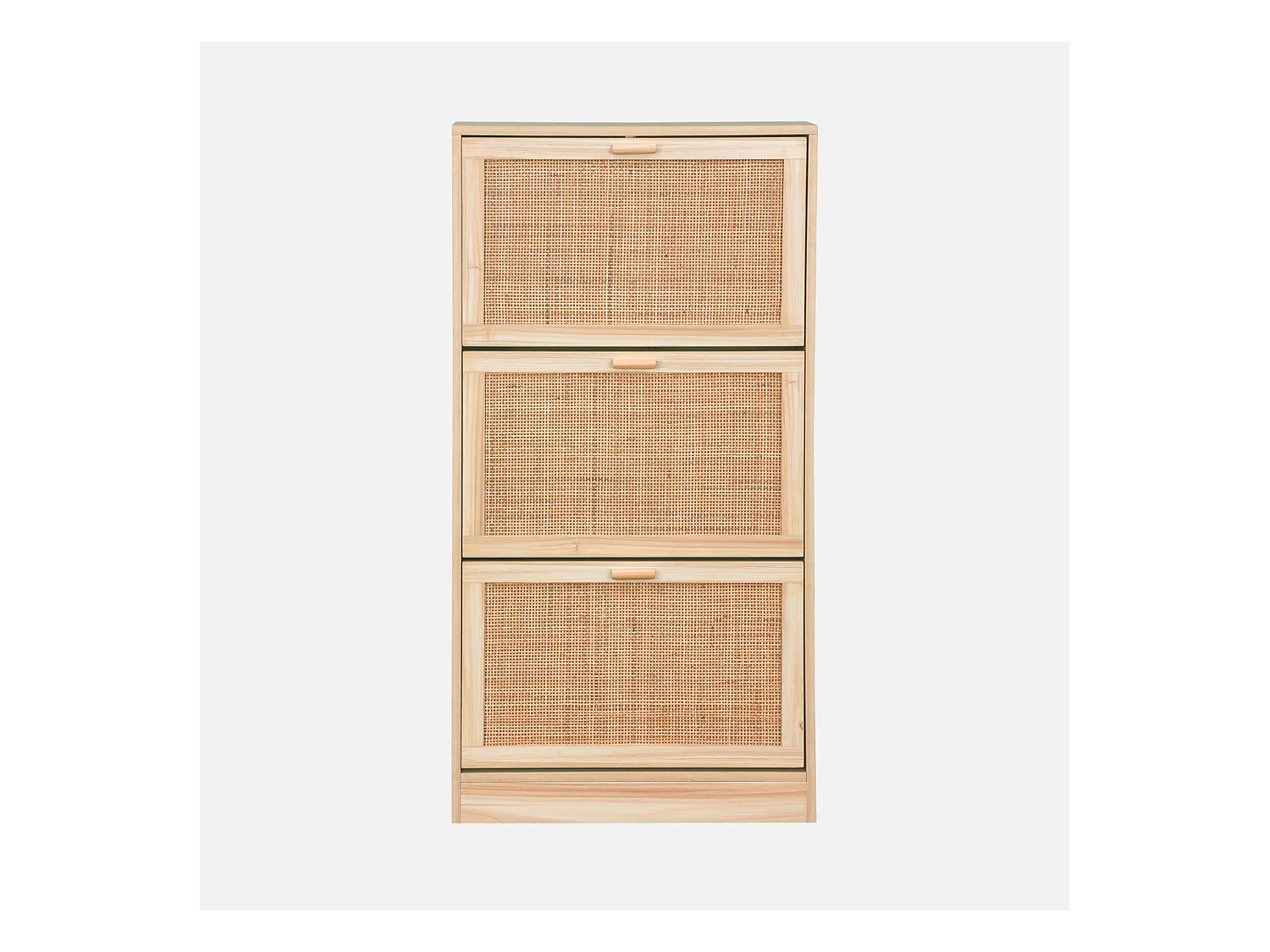 Meuble à chaussures. 3 abattants en cannage. Bohème. L 75 x P 26 x H 131cm