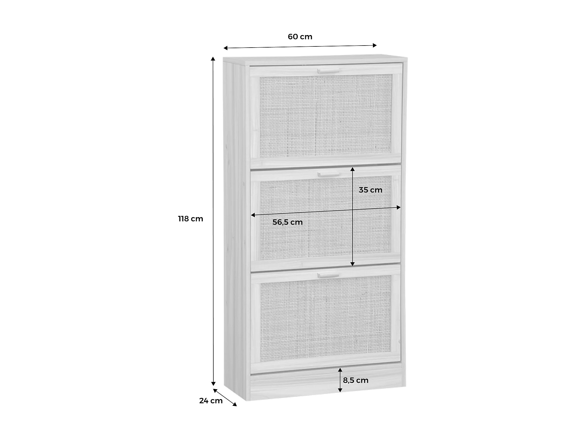 Meuble à chaussures 3 abattants cannage